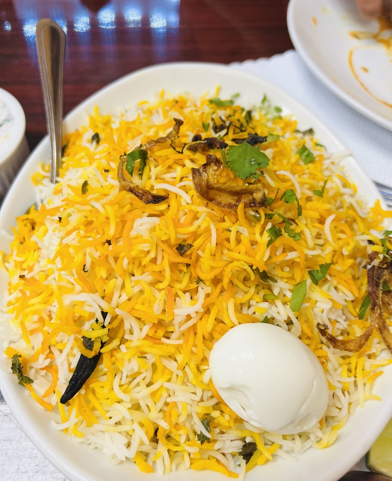 We started off with the Chicken 999, a superior substitute for boneless hot wings, let me explain. I generally do not like boneless wings as I love the traditional wings only, however, after tasting this appetizer, I would gladly order these as an equal substitute for real wings. These crispy breaded chunks of chicken were so flavorful with a substantial amount of heat that were an unexpected delight. I even enjoyed some pieces with the garnish of sliced cabbage, it provided an additional pleasant crunch. We also had the Veg Samosa that was piping hot which came with a thick soy based sauce that was also delicious, that’s 2 for 2 out of the gate, a wonderful start. Both dishes came out at different times which was fine as we were sharing everything we ordered which was really a bonus. Now the rest of our lunch began to be interesting, we ordered 2 different chicken Biryanis entrees but with the language barrier, it appeared we received one (it was chicken, but wasn’t what we ordered) that we thought was what we ordered and a goat Biryanis. They removed the goat dish and then came out with our original order. So in essence we had 3 entrees on our table, we were a bit confused and the waiter couldn’t explain why, again to a language issue. So we ended up having (pictured in order) chicken 999, Veg Samosa, Hyderabadi chicken dum biryanis (I believe), Alakai Biryanis chicken and Temper biryanis chicken. They originally billed us for the extra entree and after explaining that we didn’t order the one biryanis, it was immediately removed from our bill. We also had the Indian Chai tea (hot) which was absolutely delicious. The Temper biryanis was supposed to be really hot, but IMO it was at the upper level of heat but did not pass that point where it was too hot to enjoy, however, I enjoy spicy dishes so I’ll leave it at that. We really enjoyed this place, it isn’t fancy by any means, but it had great service and absolutely delicious and flavorful food. The menu was very descriptive compared to other Indian restaurants and was the main reason for choosing to stop in, a credit to the owners to provide this necessary information for those of us that are uninformed. We can’t wait to order other different dishes thanks to how they are described. I highly recommend this place and cannot believe it isn’t rated...
