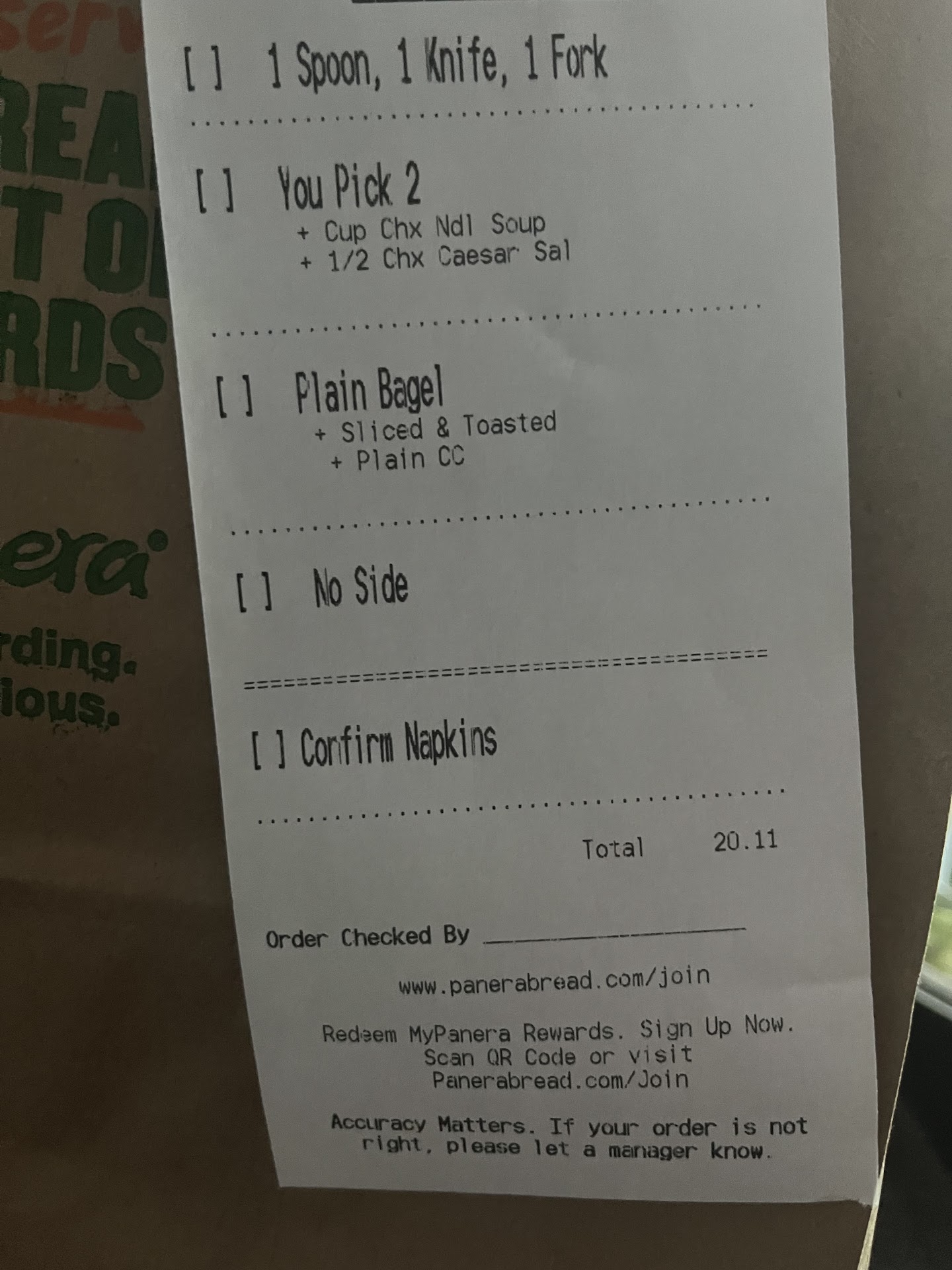 Read moreHORRIBLE management. Yesterday I went to Panera in my hometown as I normally do, ordered from the Kiosk and accidentally ordered from someone else's account (random person). I spotted the manager, asked if he could please help me, he looked at me and said "I am not doing that" turned his back to me and went to the back of the restaurant. Is this part of your Panera Management Training? Ignore customers when they kindly ask for your help? Very shameful that this is your "tone at the top" in this location. Not only did I not enjoy my food after that sad encounter, but I also lost a "Panera visit". I went back to the manager after finishing my meal to see what I could do to get my "visit" on my account and he was very rude to me the whole time and said there was nothing he could do. But why could he not cancel my order at the very start when I initially asked for help? It is fine if at the end of the day there was nothing that could be done, but him walking away from someone who needed help was what disturbed me the most. I NEVER write reviews for any place but I needed to put this out there because I'm ashamed that this is attitude someone in...