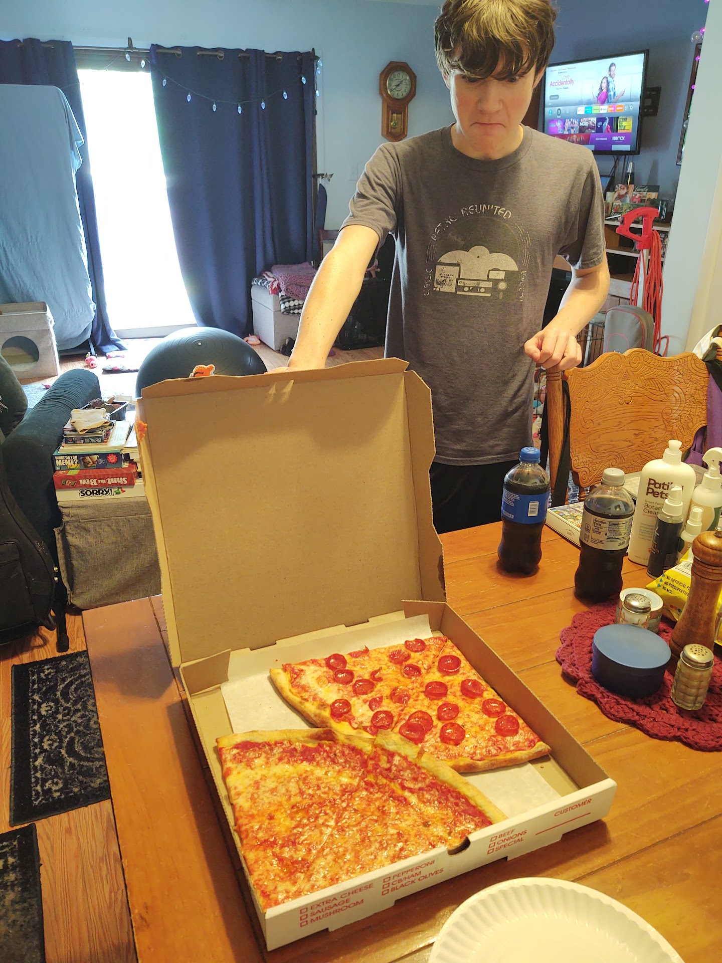 Sabrina's is located in a strip mall along the busy Route 130. Upon entering, you see several eye-catching wall decorations that bring about feelings of being in a pizzeria in Italy. There are beautiful tile paintings and photographs. The seating area is puny, with a bar-style table along the window and along the wall with around 8-10 seats total. There was plenty of variety available at the countertop and I decided to order the plain, pasta, and grandma slices.