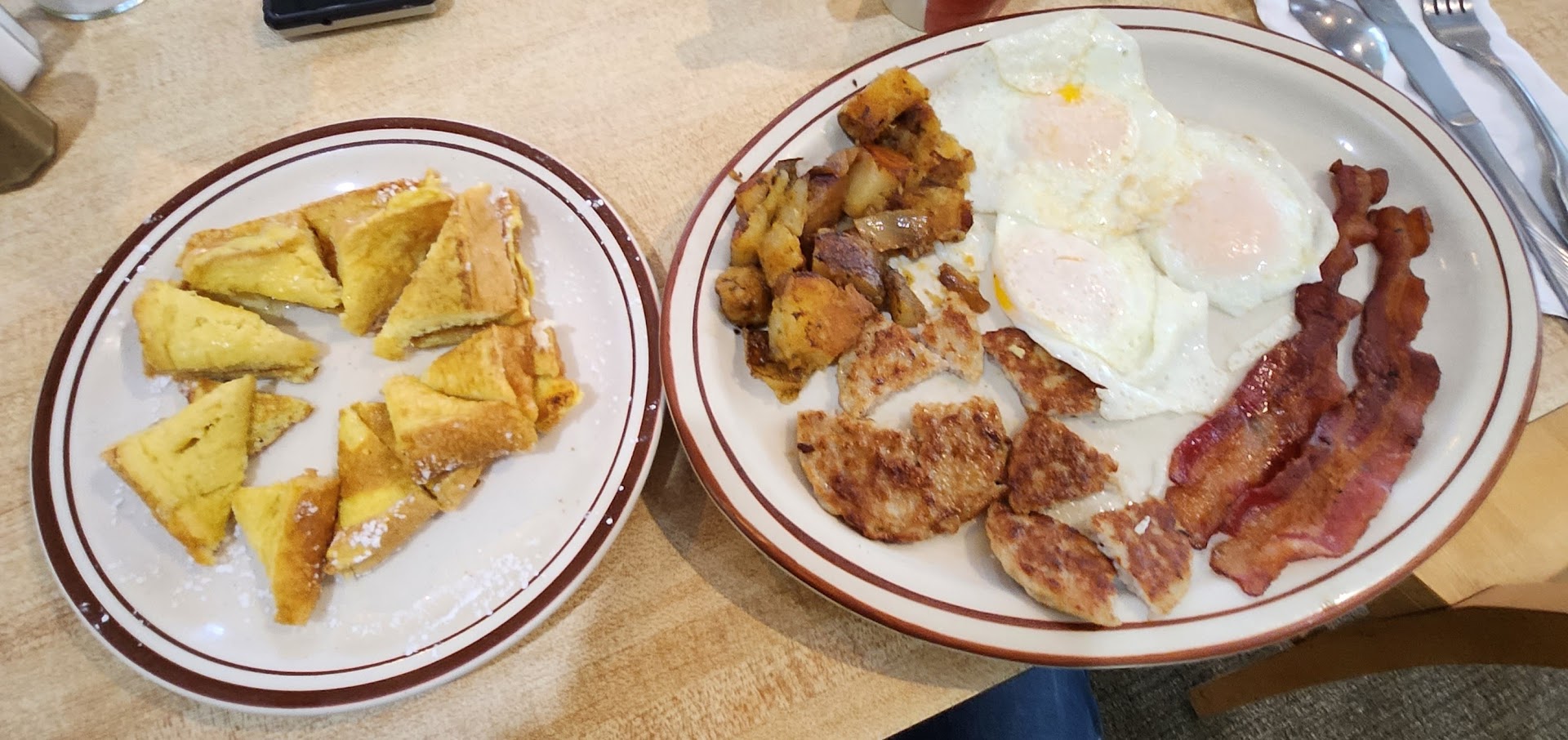 Read morePlease read until end... Today is the second visit to this restaurant and the first time that I have gone out for breakfast since covid hit. My husband would not be happy knowing that I gave three stars because he was very unhappy with his breakfast. He said his omelette was very bland and watery-like and that he only had about four pieces of onion in his home fries (when ordering you are specifically asked if you want onions on your home fries or not).