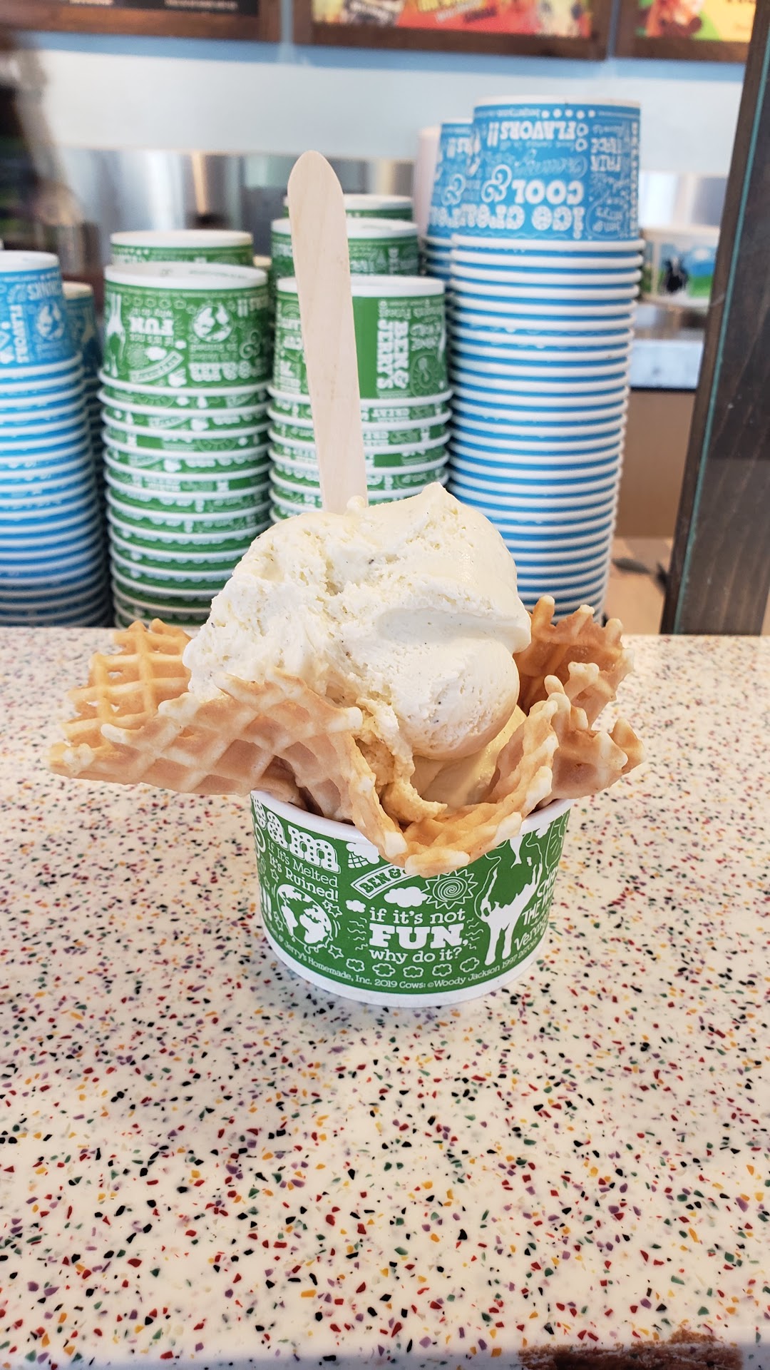 Read moreI asked for a lid before ordering two scoops for the small size. The scooper dropped my second scoop on top the metal case and put it in my ice cream bowl. I thought that was weird but moved on but really thought that should’ve been discarded and given a different scoop. Then that scoop was already on the outside of the bowl and overflowing the bowl so the lid couldn’t fit and ice cream on the outside that wasn’t cleaned up. She saw the lid wasn’t fitting properly so she got me a larger bowl and a larger lid to put my smaller bowl and lid in. The larger lid wouldn’t stay latched. I ended up with ice cream all over my car because the lid popped off while driving and I didn’t know. Super frustrated and disappointed over this because I specifically asked for a lid before ordering any ice cream. If the servers know it’s a tight fit with a lid just give the larger bowl and lid to begin with and just put the...