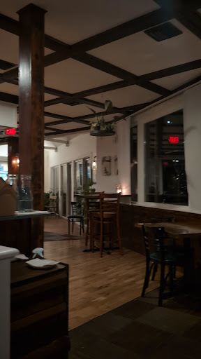 We sat in their courtyard on 2 beautiful summer evenings. It's a secret hideaway that's tucked in a lovely landscaped area to the side of the restaurant. Traffic sounds from Rt.6 are hardly noticeable from this pleasant dining area. They also have a nice covered dining deck and inside looks modern, upscale and welcoming. The bar is the centerpiece in the main room. I'd choose to sit there on an evening when the weather isn't great for outdoor dining.