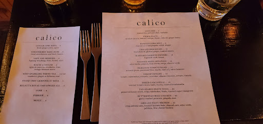 Ā Ā Ā Read moreI brought my husband here for a birthday dinner (and our first time at Calico) and we discovered our definitive local special occasion spot. The cocktails were exceptional and inventive (especially the Bitter Mistress). Not only were the fried chicken, collards, jalapeno coleslaw, and blackened cobia outstanding, but my husband (a southerner) had come to Calico expecting Southern food poorly reinterpreted in New England and was instead totally impressed! I know Calicoās menu changes seasonally, but the sweet potato and chickpea pakoras were actually the best vegetarian dish weāve ever had and we hope to enjoy them again in the future! We enjoyed ourselves so well that we stayed for dessert. My only quibble is that the āMango Sticky Rice Sundaeā with āhorchata ice cream, glazed mango, coconut sesame granolaā did not clearly indicate on the menu that the āsticky riceā was represented by the horchata [rice milk] ice cream, as our server explained after Iād eaten half of itābeing a literal reader, I expected sweet sticky rice in my dessert and was disappointed to miss it. But that wonāt stop us from coming back, because this was still one of the top 5 meals of our lifetimes. Highly...
