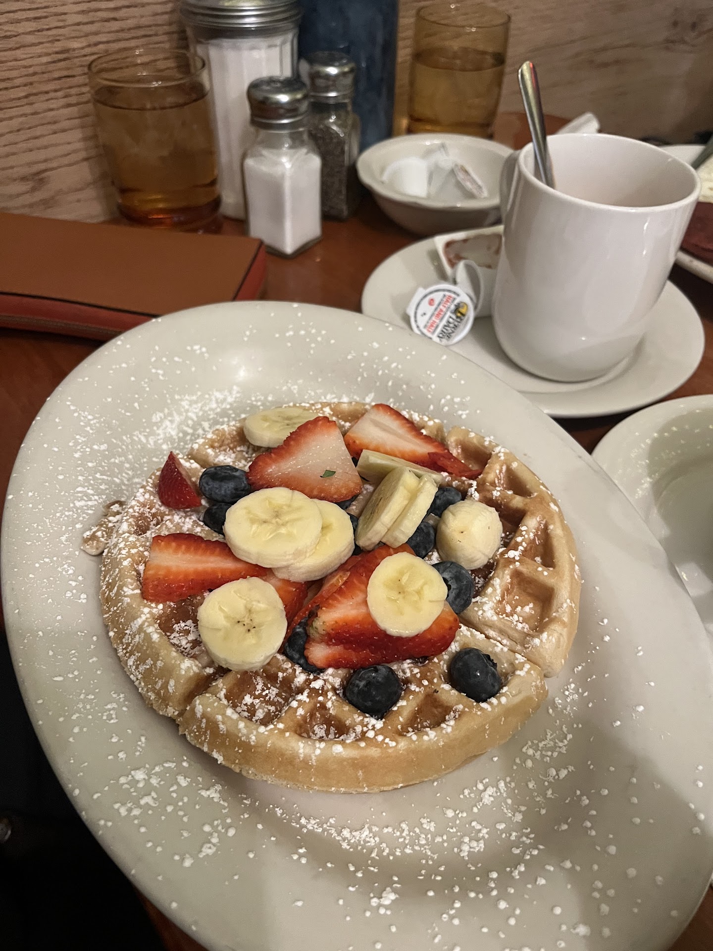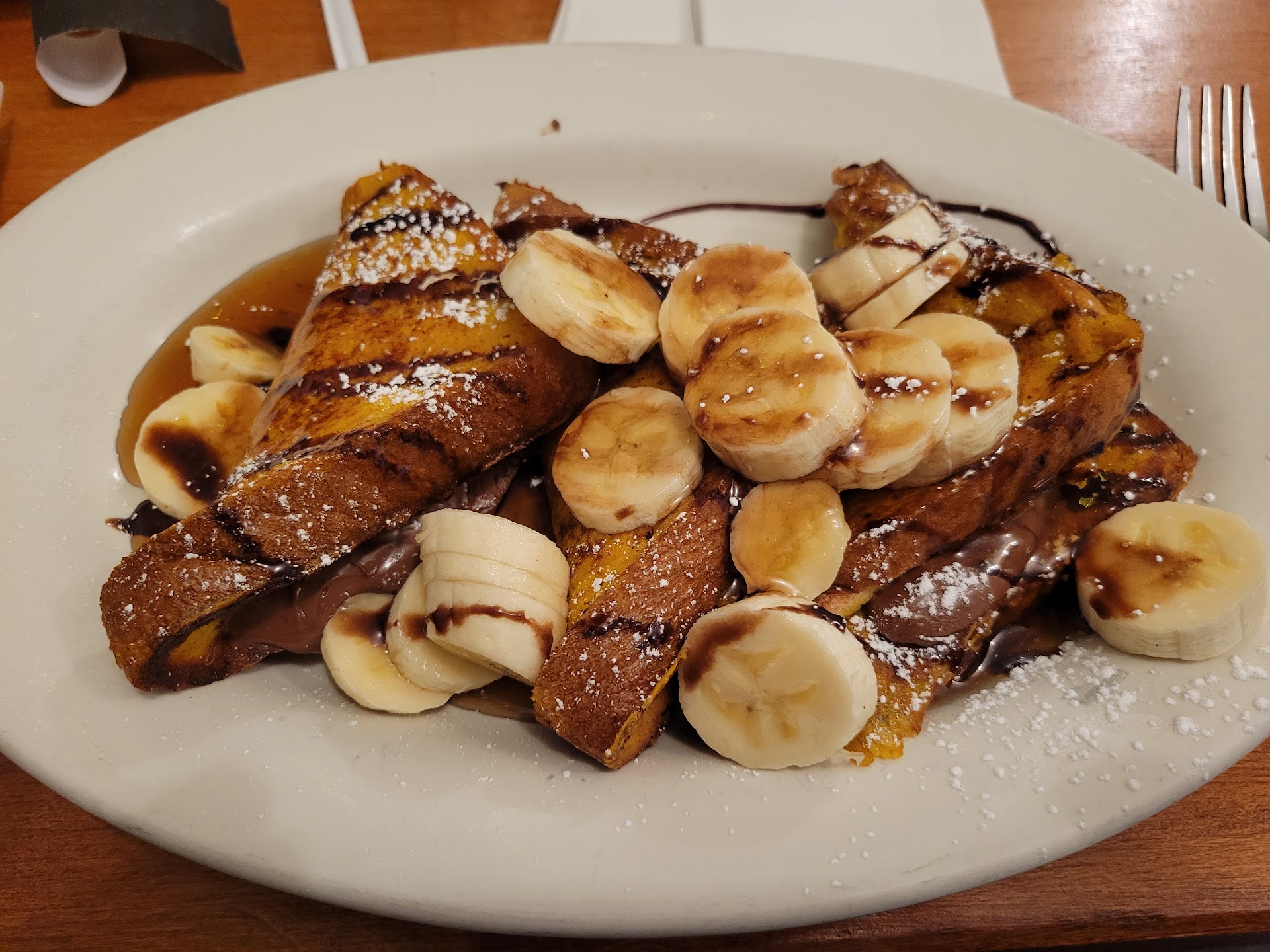 Read moreThe waitress was having a bad day. My wife's eggs were overcooked, by the time she got her plate her pancakes were cold and they were covered in powdered sugar, which is not specified on the menu and not what was wanted. She ended up eating just the bacon. Our friend's toast came out well after all of the food, probably forgotten as I had to ask the busboy if he could get the toast. She had 3 bites left of her meal when the toast finally did show up and she asked for a refill on her unsweetened tea and the waitress questioned it like it was unheard of to get a refill and then came back and said they had to make more. I had the Nutella banana French toast and it was delicious, I would've liked the bananas inside the French toast with the Nutella but I just stuffed it in there myself. We probably won't be back just because of this experience but my food was good, the service...