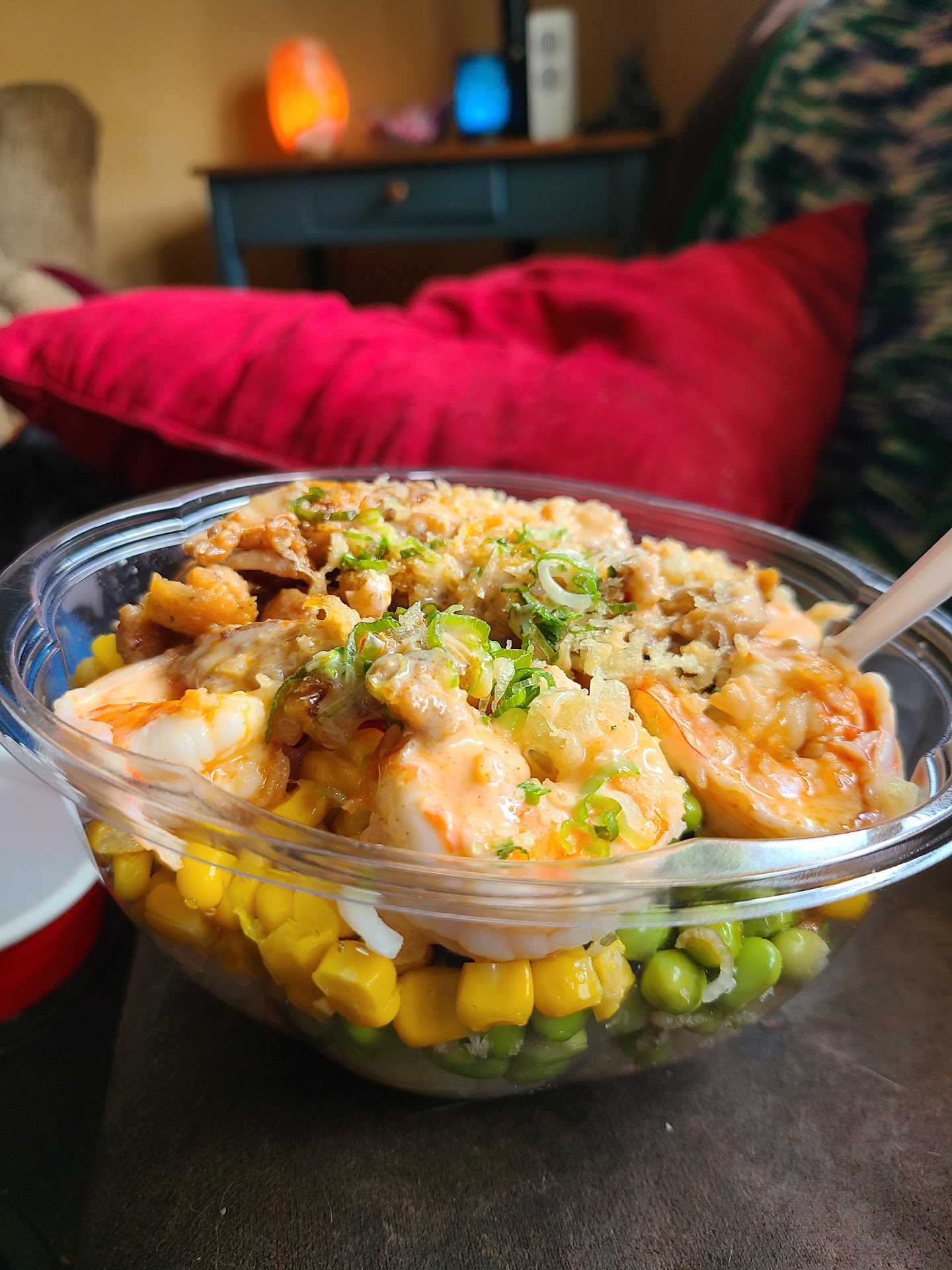 Presentation matters, and they nailed it. The bowl looked like a work of art—vibrant, clean, and thoughtfully arranged. I went with the Alaskan poke bowl: salmon, avocado, cucumber, mango, edamame, seaweed, salad, onion flakes, and masago, all drizzled with spicy aioli and eel sauce. The salad was crisp, light, and undeniably fresh. Honestly, the portion was so generous I couldn’t even finish it.