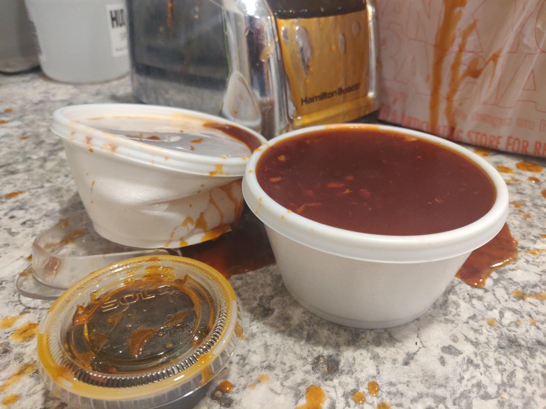 Read moreDo NOT order from these guys. Best case scenario - food poisoning. Worst case scenario - cancer + burns. We ordered food for delivery and they put steaming hot sauces inside styrofoam containers that are probably not food grade and denatured and melted. When I took them out of the package, the container melted on my hand leaving steaming hot sticky residue. Thankfully I was right next to the kitchen sink so was able to immediately flush my hand with cold water. Take a look at the pictures and you'll see what I mean. I'm almost glad that container exploded or else I'd probably have been eating molten Styrofoam. Health department needs to shut...