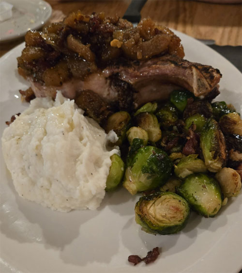 To say that the food is delicious, is really an understatement. It was as close to homemade as you could ever imagine and we just can't wait to go back and try more dishes. Last night I had the Short Ribs, served with Mashed Potatoes and fresh Veggies. My husband had a Pork Chop served with Mashed Potatoes and amazing Brussel Sprouts. Both entrees were gigantic, beyond fresh and tasted absolutely amazing! It was hard to make a decision from their huge list of housemade desserts (made by the one and only Gloria), but we opted for the Banana Cake. This cake was so moist, fresh and flavorful that we were sorry that we didn't leave enough room to enjoy it all-- but we did take half of it home. And I can't forget to mention that this is the kind of restaurant that actually pours a full glass of wine - not halfway, not 3/4 way, but right to the top!