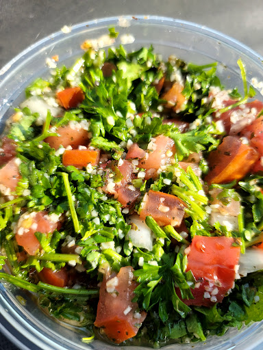 The tabouli was literally all wheat. Now this is how it is ALWAYS served in American restaurants and supermarkets but not at real middle eastern restaurants. The guy said he used Lebanese recipes- I call bs. I could have gotten past the wheat if it tasted good but it was extremely dry.