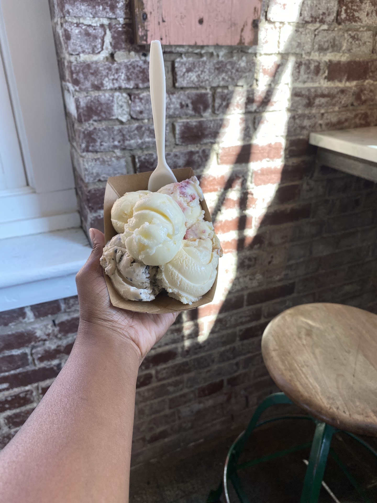 Read moreI got their cow flight which is $7 for 5 scoops of ice cream. They had so many flavors and I’m an ice cream lover so I couldn’t bring myself to just choose 2. And I’m so glad I didn’t because I ended up only liking 2 of the 5 flavors. Local sweet corn- has actual pieces of corn in it. My least favorite. Just tasted like milk Cookies and Cream- cookies are like the crumble you find in ice cream cake Peach blackberry cobbler actual peach pits and seeds in it. Be careful Pina colada sorbet- refreshing and sweet. With small pieces of pineapple Drunken pineapple was my favorite. Cream base ice cream with pineapple drenched in rum and a Carmel swirl. However, I didn’t find actual pieces of pineapple in this flavor.