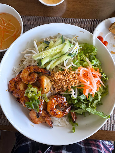 Read moreCertainly the best place in Easton to slurp down a hot noodle soup and they offer a wide variety of condiments at the table for it. Wish their Bahn mi had a little more meat 'cause it's really good, but for $9 you can't complain. I've been thinking about the BBQ Pork since we got it a few days ago (it's what prompted me to finally leave a review) and the spring rolls (both vegan and non-vegan) slap. I thought I'd miss the meat and shrimp but they put in some fried crunchy that I totally loved. You GOTTA get one of the Peach-Orange-Lemongrass teas when you go, they put so much of the aromatics in that makes me wish you could top it off. I like how open the dining room is, it's just clean and open and feels really relaxed and they have a big collection of sound equipment off to the side that's really cool to look at. Quick, polite, efficient service. We stopped in during their 5 year anniversary and they sent us away with free hats and I thought that was just the cutest! Every time I go I leave with enough food for another meal left over and I can't wait to come back! Definitely one of my favorite places to...