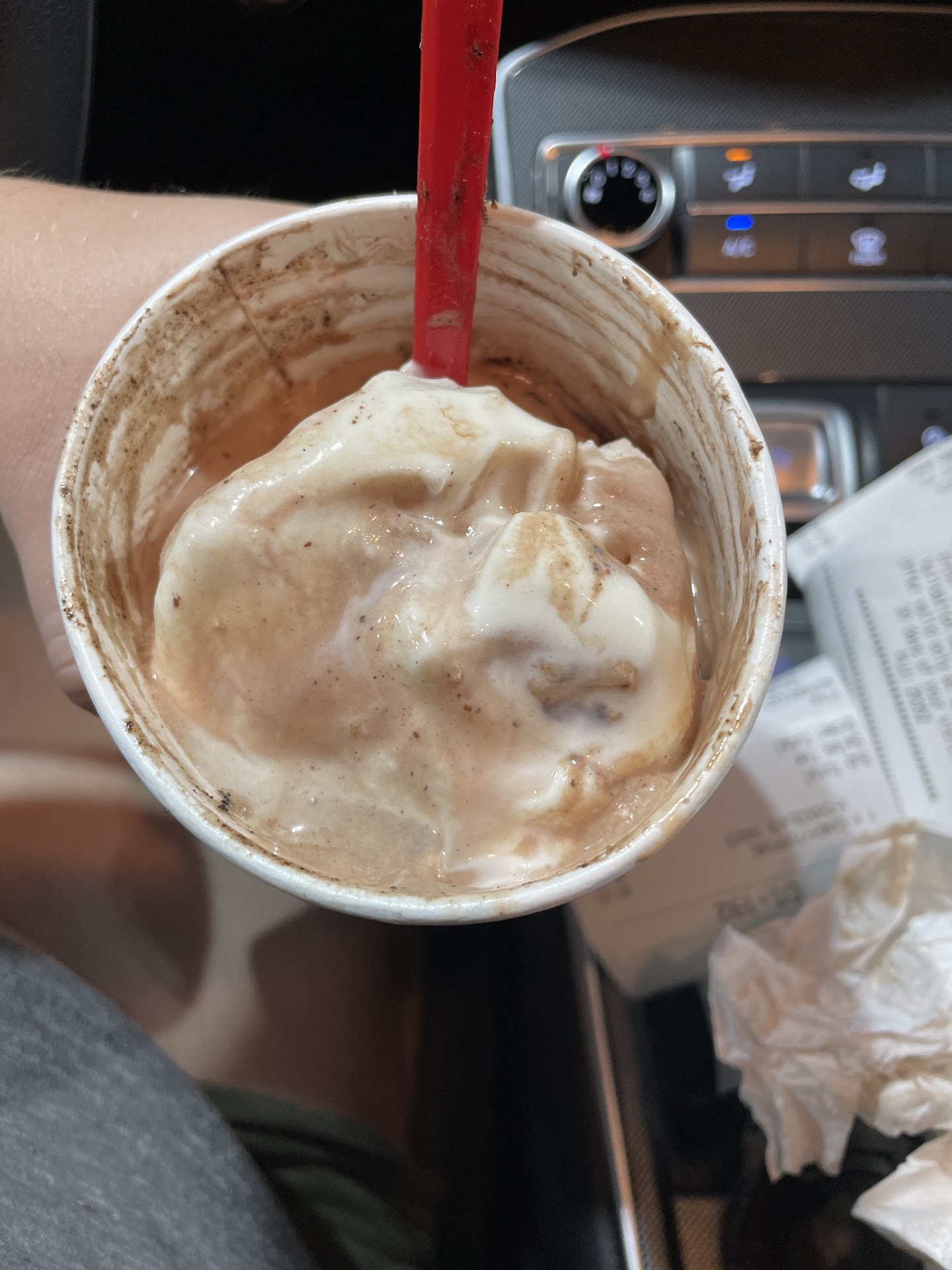 Read moreMy order was not correct. I ordered a blizzard with extra Coco fudge. My sister order a blizzard with the regular amount of fudge. My blizzard came to me almost white. I let them know that I ordered extra fudge and showed them how white mine was. They said that their chocolate ice cream machine was down for the night. That doesn’t matter because I know the blizzard I ordered is made with vanilla ice cream and coco fudge to make it chocolate. I asked if I could just pay for some more fudge to add it in myself (which I did pay for) and they gave me chocolate syrup instead. There is a difference in the taste. The staff was nice to my face but made comments to each other. My money was wasted here. The picture is after I added the...