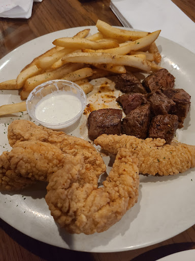 Read moreWe stopped in here as dad wanted to try the restaurant out as a new place. We entered the building, found it to be a nice place inside. We were greeted promptly by the hostess with a great smile. We were taken to a table and were seated. Our waitress came over with a great big smile and warm friendly attitude which set the mood for dinner. We ordered our drinks as we looked at the wide variety of menu selections. They had sandwiches to full dinners with steak. We ordered and wasn't long before we received our entrees . Warm, taste, and as ordered. We were asked if we wanted refills on our drinks. In the appropriate time our waitress came around several times to ask how our dinner was and if there was anything we needed. A great professional I have to say. This lady knew how to treat her guess. We finished our meal and our waitress ask if we wanted to dessert. We declined as we were both full. We received our check and promptly paid and left. The place was a place I would highly recommend coming to for lunch or dinner. It has room for a large party or even the smallest of parties. A lot of TVs to watch sports on. They have plenty of parking and handicap parking and seating. They accept cash, credit cards. Only thing we missed was the waitress's name so we could recommend her to everyone. The only distinction she had for us to remember her was airplane on her left tricep and since I am into airplanes I will definitely remember her. She...