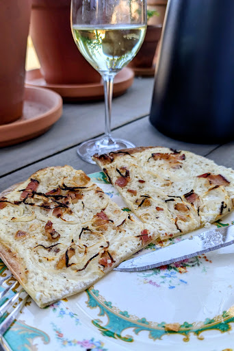 Read moreWhat an unexpected gem of a lunch spot! We were in town for the day and didn't have the time nor energy to stand in the long lines for the other more obvious lunch options on the main street. While from the sidewalk the Phoenix looks more like a wine/book shop, the downstairs area is a wonderful and cozy small restaurant with a great atmosphere and delicious food. We had the flammkuchen (Alsatian flatbread) and a bottle of Portuguese white wine on the back terrace with a view of the water and thoroughly enjoyed ourselves, while feeling very much away from the crowds. I cannot recommend this...