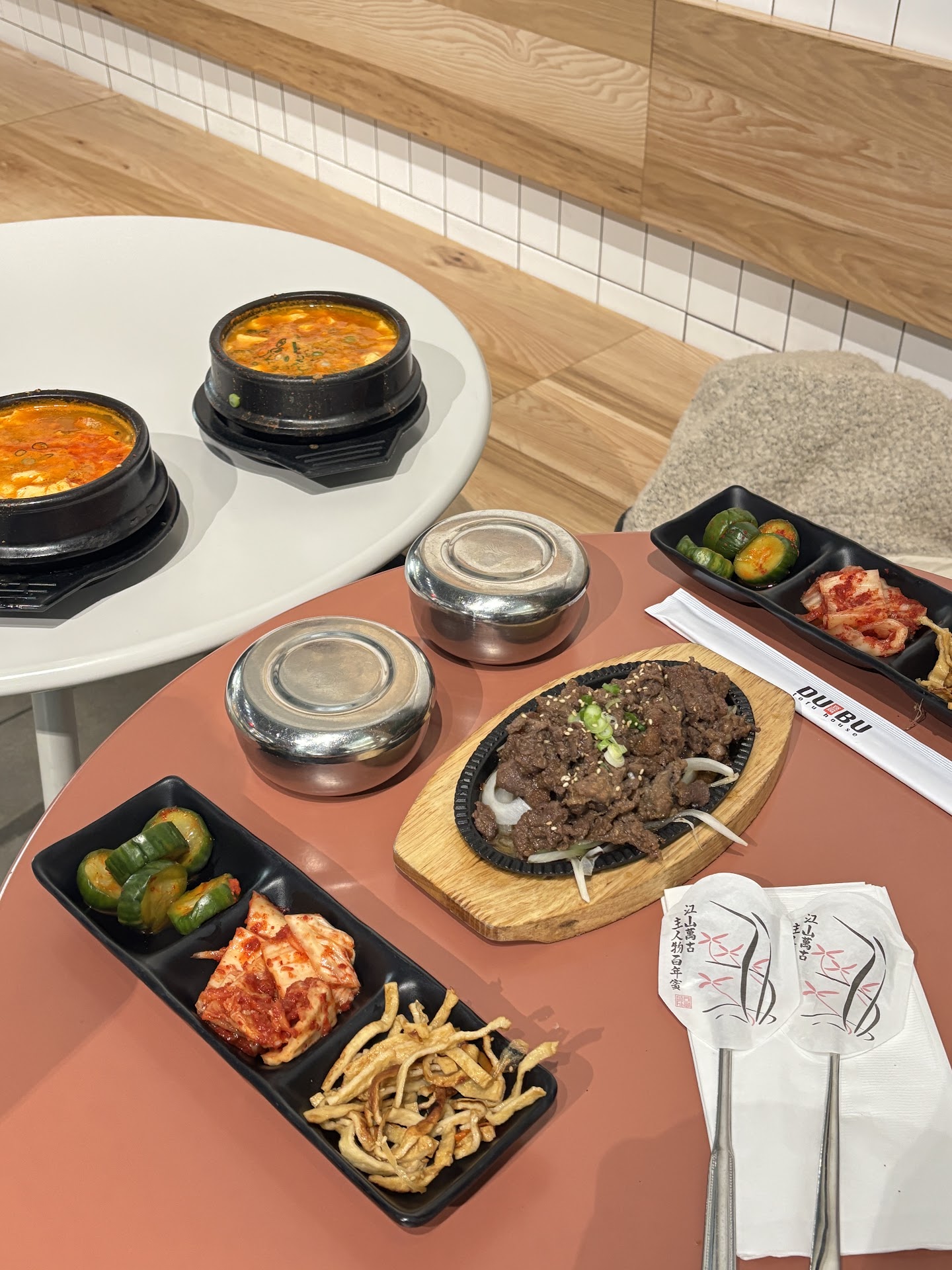 Read moreMy party and I ordered soondobu and galbi combos. The soondobu is pretty okay, the tofu is smooth and tasty. I did like that they had black bean rice. However, the cashier wasn’t that helpful when ordering. To be honest, they barely gave any galbi for the price that you pay. We got just 6 cut up pieces in total. The banchan isn’t as fresh as it could be, the kimchi is over-pickled. The cucumber “kimchi” is not really cucumber kimchi. It was sort of sweet, and tasted like sweet and sour cucumber salad with spicy powder on top which threw us off. Some of the reviews on here show the potato salad for a side, but the day we went they had bean sprouts. They seem to rotate their sides everyday, so please keep this in mind if you expect potato salad.