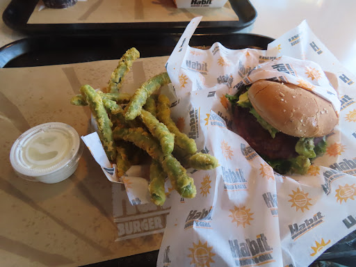 First time to eat at The Habit today. A friend recommended it to me because he knows I love cheese burgers. The first thing I noticed when we walked in was the temperature in the restaurant, warm. If the A/C was on it was set pretty high. Very stuffy stagnate air in the dinning area. Was greated by a friendly women who I assumed was a manager or shift leader because she was wearing a different colored shirt than everyone else. I ordered the sesonal item, Santa Barbara Char burger. Comes with 2 burger patties both topped with cheddar cheese and grilled onions, lettuce, tomatoes, pickles and avocado. I also got an order of fries, well done, because lets be honest, fries are never as crispy as they should be because restaurants are in such a hurry to get food out. Also ordered the tempura green beans. My friend got the single char with swiss, grilled onions and lettuce. He's kind of a plain guy, I always say you can tell a lot about a person by how they order a cheese burger. Anywho my Santa Barbara burger was good the patties were seasoned properly the cheese was perfectly gooey, melty, the grilled onions were ok. Not as carmelized as they could be in my opinion. The Santa Barbara char comes on grilled bread not your traditional hamburger bun. All in all a pretty good burger. It just still has that synthetic fast food feel about it. No home made love feel like I get at In n Out or Riders Club. The fries were cooked well as I ordered them but you could tell they were frozen. Definitely not In n Out fresh cut quality. The tempura green beans were good. But for $2.99 I feel like we should have got more than what they gave us, kinda stingy if you know what I mean. Drink selection was good. I'm an iced tea guy so it was pretty cool they had three fresh brewed teas to choose from, black tea, tropical tea and a citrus green tea. Also had strawberry limeade which was pretty good. In the end I would eat here again if I was in the area and didn't want to wait the 15 minutes it would take to get...