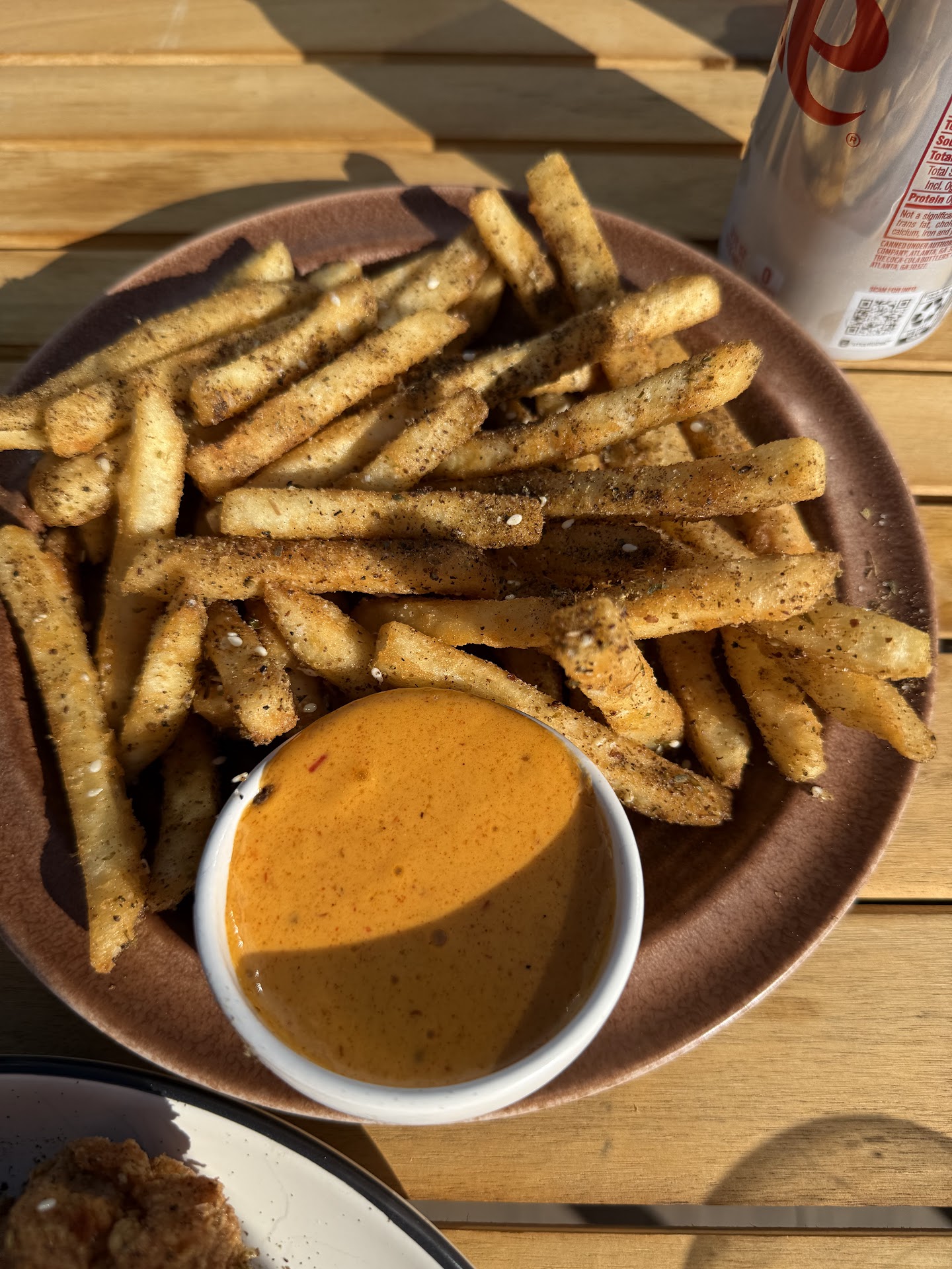 My husband had the cheeseburger medium and this was the best savory food item we ordered. Best cheeseburger I have ever had—even better than Hamburger Hamlet in LA. They grind new york steak in-house to make the “ground beef” and their sauces are all made from scratch. The ranch was a little too herby and watery for me but the fries were so flavorful they didn’t need any dipping sauce. Out of all their sauces, the blood orange dressing is the star of the show.