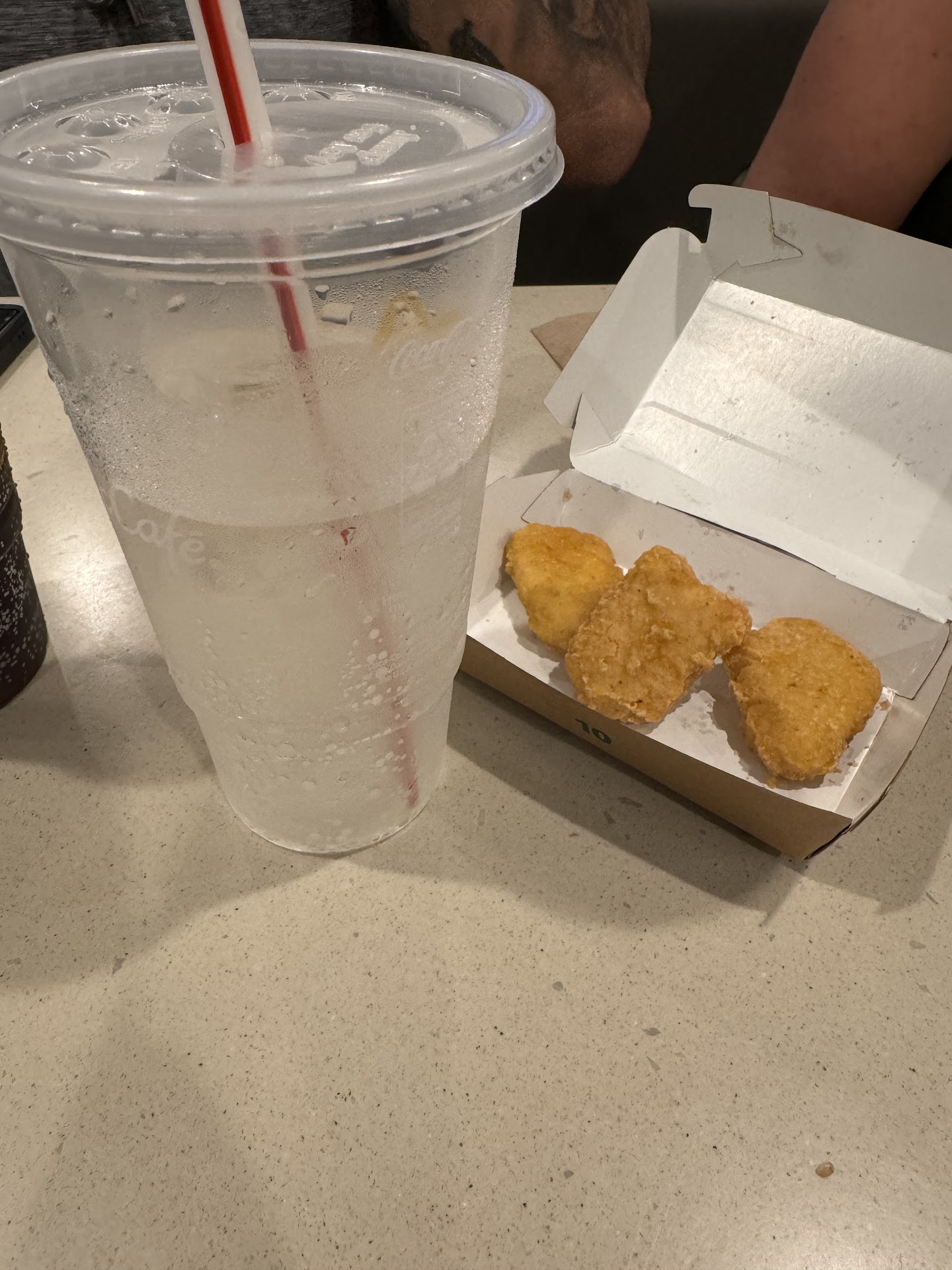 The double lane drive thru was clogged today and not even very busy. The attendant's lack of attention to my order was kind of frustrating. I was not offered ketchup with multiple orders of fries. When I asked for ketchup, the server at the second window took about two whole minutes to retrieve it. Shouldn't that be stocked at 2 pm? It was not anywhere close to the window. I wonder if anyone received ketchup today at the drive thru before that? To top it off, the second window server forgot our drinks. When I went inside, the server girl at the counter said "oh, you can just ... fill them yourself." The soda machine had not been cleaned recently and the drinks did not taste right. Some of the worst customer service I have ever received. Does anyone know what they're doing over there? Hopefully it was just an...