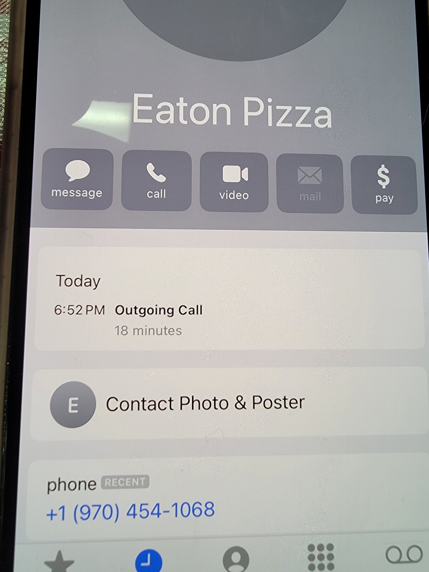 Read moreWe recently moved to Eaton and decided to try Eaton pizza I ordered for delivery during a pretty bad snow storm. Long story short pizza never showed up, I was a bit disappointed that I had to call them twice, instead of them calling me to let me know there was an issue with my delivery. On the second call the manager on duty apologized and said he would bring the pizza himself, however being almost 2 hours later I told him not to worry just cancel the order. Shortly after that I got a call from the owner of the restaurant apologizing for the problem, he gave me his personal phone number and told me to call him next time I ordered and he would take care of it. A few weeks later I called him and he kept his word the pizza was great I will definitely...