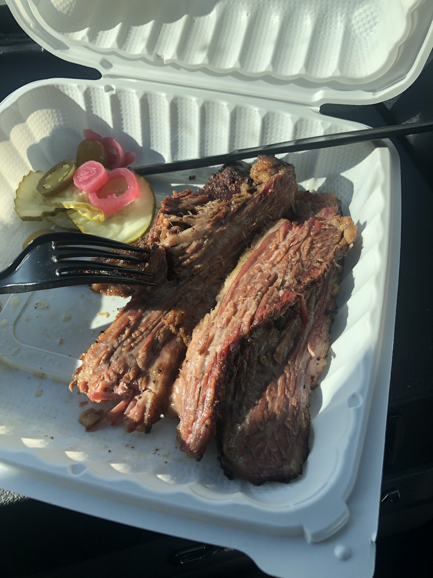 Read moreThe food was pretty good. Brisket was tasty but dry; maybe cut thin slices against the grain. Ribs were quite tasty, perfectly seasoned and smoked. Coleslaw was light and crunchy, hint of spice was a nice touch. I think my expectations were higher due to the first time was a catered wedding. The catered food was definitely selective cuts and cooks, must have caught them on an off day. Service was adequate and timely. Pulled pork was full of flavor, but quite dry. I have had the sausage and find it to be pretty good. Limited menu should tell me the food is focused and spectacular, similar to high-end restaurants and quality food trucks; but that is not accurate here. Because a friend swears it was a flook visit, we will give them another try and a second rating in the near future. With very little competition, much of the local bbq joints can serve mediocre food, charge a premium, and your average inexperienced meat eater may not know any better. Let's give them another...