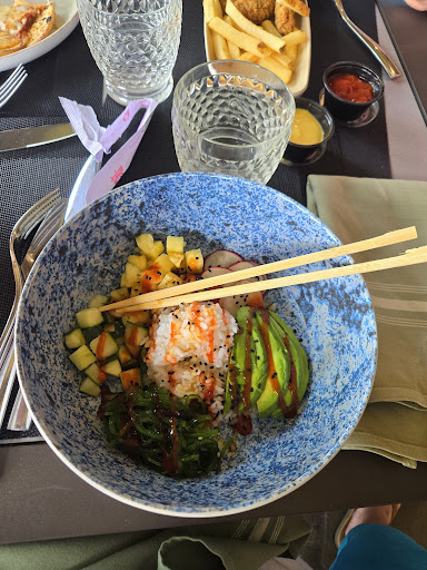 It is a convenient location and has some wonderful dishes. However, it took a long time to get orders taken and for the food to come out. My salad came out far after everyone else's food (weird). They wouldn't put tables together to accommodate us, which meant we had to sit at 2 different tables (I guess they only have one table that accommodates parties of over 10 people). The flatbread pizza, seaweed rice bowl, garlic paremsan wings, and Asian chicken salad were really good. The kids chicken tenders and fries were small and not great and are double what they cost at non fancy restaurants (which have larger portions and taste better). I guess I just expect more from the Ritz. If I'm going to pay that much for lunch, I want impeccable service and food. This...