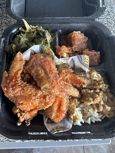 Read moreNothing to fantasize about. I had the honey fried chicken, yams, greens and paid $6.99 for sub-par seafood rice. They offer 3 types of rice but were out of rice and pigeon peas and yellow rice so I paid additional for the seafood rice. My chicken had no honey flavor and was so salty, I’m sure my pressure spiked. The yams were dry but had a good flavor. Mac n cheese has a great taste but is dryyyy. The collard greens are sweet and not good. They were cut great and cooked well, just too sweet and they lay a piece of paper on top of them then put your meat on top. The jerked Turkey wings were also dry but had a good flavor. The wingettes were not what we expected either. Small fried pieces with wayyyy too much salt. The koolaid was good and sweet and the fantasy drink was no fantasy either. Lastly, the strawberry crunch cake and the red velvet cake were good. I won’t be returning. Cashier was pleasant and had great...
