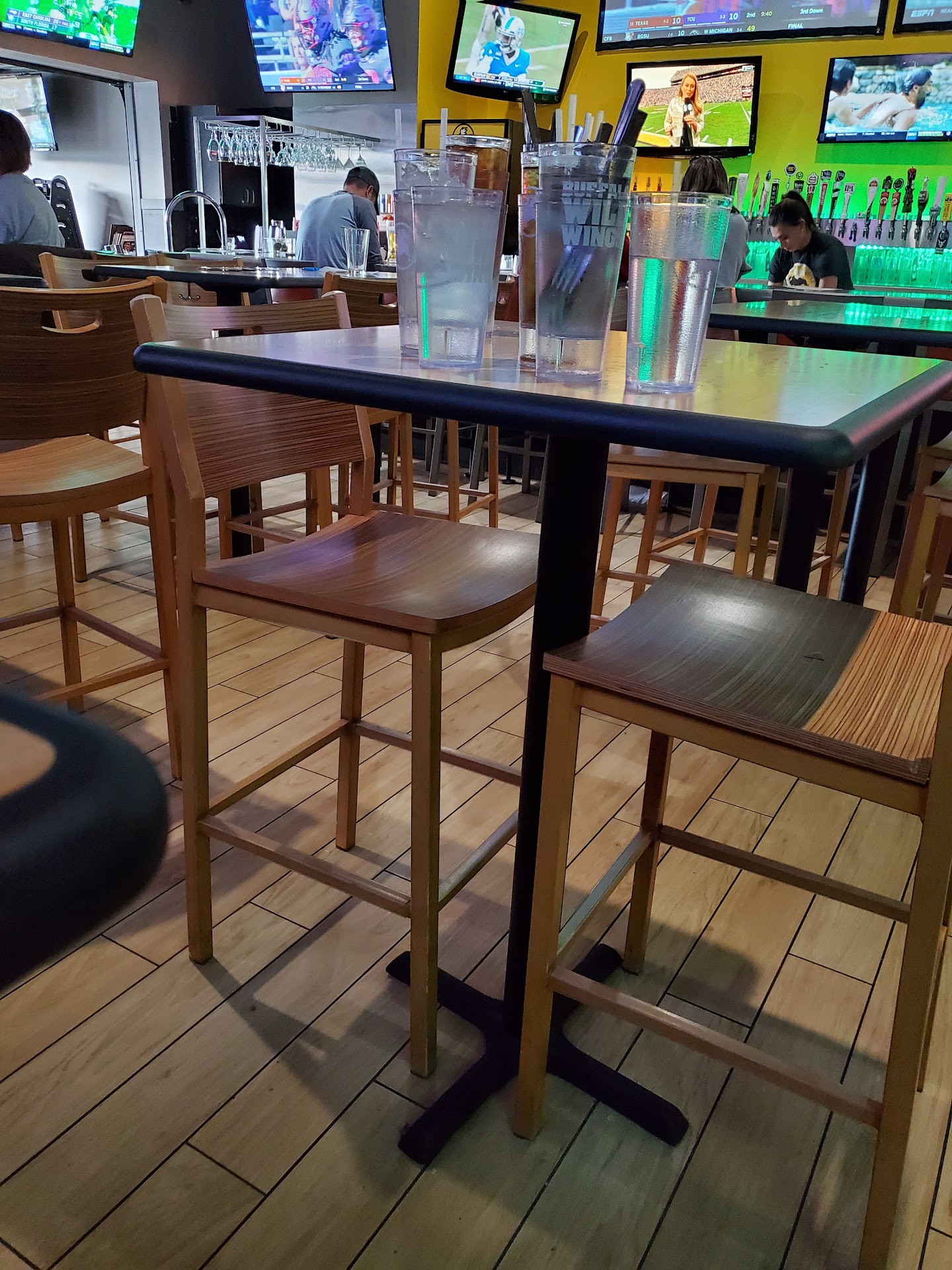 Read moreOkay, so I hate to write negative reviews but both times I went here went so horribly that I felt obligated. The most recent time I went the waitress spilled drinks on my friends and I. While this was unpleasant I wasn't too upset because it was an accident and these things happen. After moving us to a different both our waitress took our orders and the waiting began. We got to the restaurant at about 8:30, this is important because one of my friends had to be home by 10. This was a Monday night and there was no big game on. When we arrived there were 3 other groups sitting on our side of the barrier and two of the groups already had food. After our food was ordered it took 40 minutes, 40 minutes itself isn't that bad but combined with how little people there were and the fact that a table that got their way after us ordered, ate, and got boxes before we got our food: it was unbelievable. And the only reason we got her food when we did was because one of my friends went up and talked to a different waitress about how long it was taking, because our waitress hadn't come back over to our table in about 30 minutes. Our waitress, after hearing this immediately ran back and got our food. The manager had been over at our table and apologized for the wait and promised to figure out why it took so long. The waitress use the excuse of us being a large group, which is kind of a bad excuse considering there were five of us and this is Buffalo wild wings wear a large group was way bigger than 5 people. She then proceeded to tell us careful it's hot when in fact it was not. It was warm at best. Considering how late it was and that we had discussed it before our waitress got there we asked for to-go boxes because we couldn't wait there any longer when our friend had something she had to go to at 10. The waitress then proceeded to ask if we had talked in the manager and when we told her we did she ask what he said and that she would let him come back with the bill so that he could mark what he wanted to mark. Unable to wait much longer three of my friends left due to prior engagements. Well me and my other friend sat there and waited to the manager. While sitting we could see the manager walk around and even seat other people well he was supposedly seeing what took so long. My other friend and I waited over 10 minutes for the manager to come back and talk to us about our bill. When he finally made time for us, he marked 25% off and apologized. Know the discount had nothing to do with how upset I am. What upsets me is the lack of sincerity the manager had. the only thing he apologized for was the wait and when my friend mentioned how some of the chicken was cold in the most polite way possible he just stared at her and apologize again for the wait. The spilled drinks were not mentioned at all and my friend and I just left because we both dislike confrontation. It was very clear that both the manager and the waitress thought we were overreacting when in fact we were just trying to be polite about a bad situation. All in all this was one of the worst restaurant experiences I've had in my entire life. I'm very frustrated with how it was handled. And the funny thing is he never did tell us how...