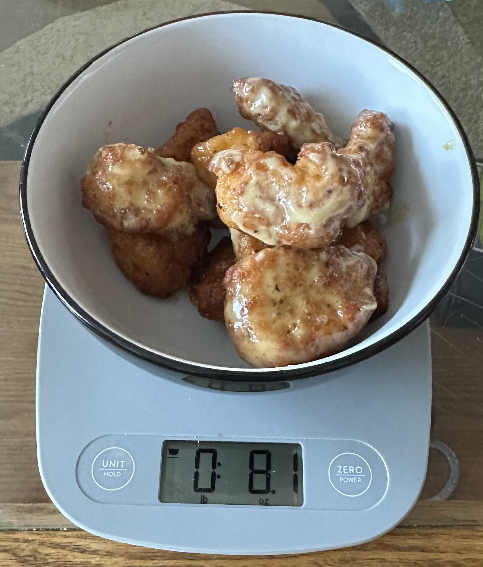 When I called to figure out what happened, the lady who answered told me that she was the one who boxed it up and that she put in the correct number for ātheir poundā of chicken wings. Apparently they only give you 12 wings, even if half of them are only about the size of a chocolate truffle. When I emphasized that I expected a POUND of wings when I order a POUND, the ladyās only rebuttal was that they lose some weight when cooking. Yeah, okay, but if you look it up, chicken breast only loses about 25% of its weight when cooked, and thatās not even including the weight the breading should add. But, even giving them the benefit of the doubt in that regard, I should have had at least 12oz and I did not. And on top of that, they tasted over cooked, some of them to the point of tasting a bit burnt.