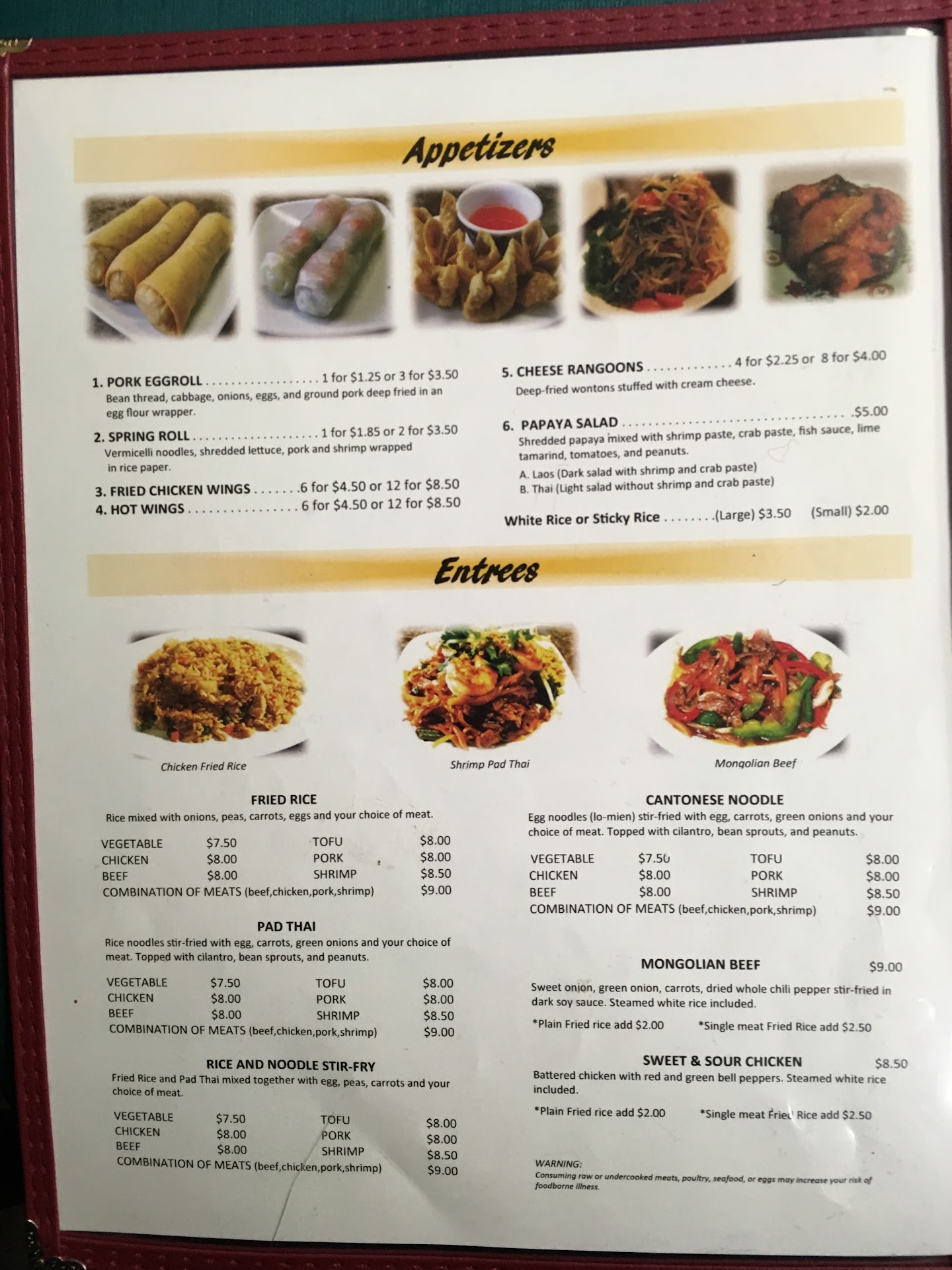 ย ย ย Read moreHorrible service, first time there and will be the last time. Dont get me wrong my family and I were excited to check out this place since were not from wisconsin. They seated us quickly and took our order quickly but then we waited over 30 mins and still no food! Not even our appetizers came out. People who came after us even got there appetizers before us. I went to check with the guy at the register and he went to check in the kitchen and came back and told us it would be another 30 mintues?! RIDICULOUS!! No one even thought to at least notify your customer that food may take a while or check upnon your customer if they needed anything else. It was not that busy but staff made it seem like they were so busy, thats no excuses, this was 1 hour until closing on a sunday. The guy at the register alsp said we ordered allot of food thats why its taking 1 hour! We only order 1 pho, 1 curry, and 1 spicy stir fry to go. Very...