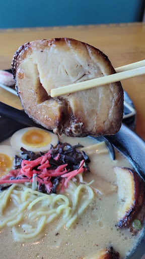 As for the ramen, it was personally one of the better tonkatsu ramens I have had. The broth was rich and very deeply pork flavored without being "piggy" like some can get. It was perfectly salted, no overseasoning. The chashu (rolled pork belly) was incredibly tender and fall-apart amazing. I personally have some texture issues with animal fat, but I truly could not care about that with how perfectly melt in your mouth it was. I do wish the ramen came out a little warmer, as by about 10 minutes in it was already cooling off a lot, but the flavor was out of this world. This bowl is a good, large portion and I am going home with about half of my bowl as leftovers still.