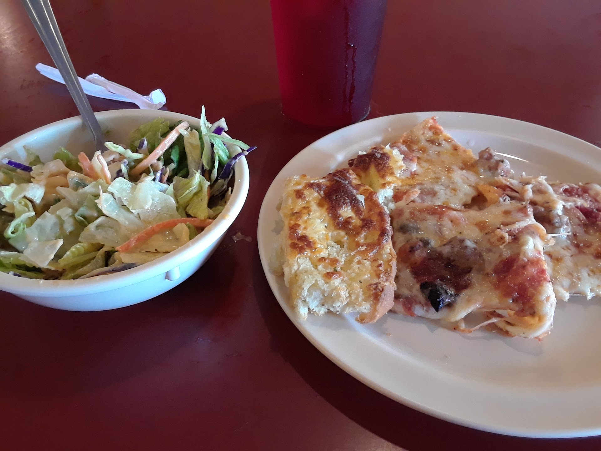 Read moreAs I walk in things did not start well . It took about a minute and a half to be acknowledged by the boy behind counter. He was more interested in eating then taking care of customers. only to be told to take a seat and someone will be with us . It would have been nice to have a sign saying please be seated. The waitress seemed upset when we didn't order a soda. Things picked up for the better once we got up to get our food. The salad bar is excellent, with crisp cold items and fresh. The hot bar with the pizzas ,garlic cheese bread, mini ham sandwiches and desert were all very good. The waitress was very disappointing she got our drinks and never came back to the table again. I had to ask twice for the bill and then waited 5 minutes for it. But like I said the food made up for the bad service. you cannot beat the price at $7.12 per adult dinner and $6 for adult lunch. Will definitely going back again. Hopefully get a better waitress...