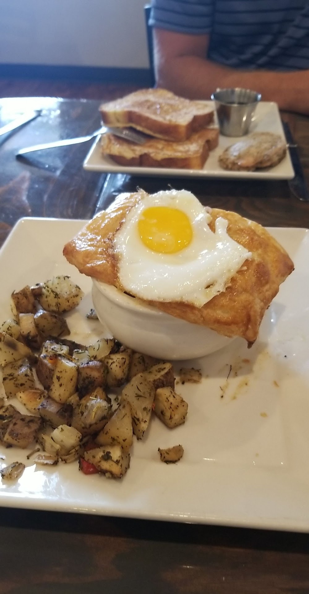 Read moreMy friends and I read good things about this place for brunch so we wanted to try it out. There was a bit of a line, so we were thinking that's a good sign! I decided on the crab cake benedict. When I got to the counter and ordered, she said, "I'm out of crab. It didn't come in." So I was flustered and ordered the biscuits and gravy, asked if it came with eggs and she said, "we can make it that way." So I got two over easy eggs with biscuits and gravy, and a large latte, my total was about $21. I wish I had known that they used mugs for dine in and to go cups for carry out orders because I would have asked for a to go cup. The "large" latte mug filled about half of a to go cup, and it was about $7. My friends had ordered the eggs benedict and biscuits and gravy. The eggs benedict came with a side of breakfast potatoes, I didn't try them but she said there wasn't much flavor for them being seasoned. My other friend's biscuits and gravy came with a huge sausage meatball in it which was kind of funny. The sausage gravy was mediocre, I added pepper to mine, my friend added both salt and pepper to hers, but decided she didn't like it enough. I was a little surprised that it was about $10 for one biscuit open faced with sausage gravy on top, and $3.60 for two eggs. Maybe I'm just used to small town pricing, maybe I had higher expectations, but the food was kind of underwhelming. My friend had also ordered some macarons to go, I think $2 each or 6 for $10. She got her box of them and when she opened the box, they weren't much bigger than a quarter. She tried one flavor and said it didn't really have a flavor other than the frosting that was...