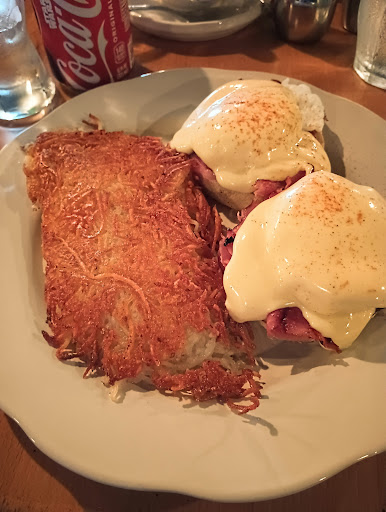 Read moreWent here this morning for brunch as we're on a road trip and saw the excellent reviews so we were super excited to try this place out! This was one of the most disappointing brunch experiences we've had. Firstly, the atomopshere is dark, tacky designs, and not inviting. The servers (and possibly owner?) were talking extremely loudly at the bar the entire time we were there. This is a very small restaurant and there was no consideration on their end to realize that talking about personal conversations such as taking Prozac, isn't appropriate when customers are 10 feet away... Besides all this we at least expected amazing food from the reviews. Food took very long to come out. I got a ham and cheese omelette with hash browns, my boyfriend got the eggs benedict, and we shared the pancakes. The food was cold, bland, and below par. The pancakes were the only decent plate of food we got because they're definitely made from pancake box mix. I would highly recommend going ANYWHERE ELSE as this place was extremely...