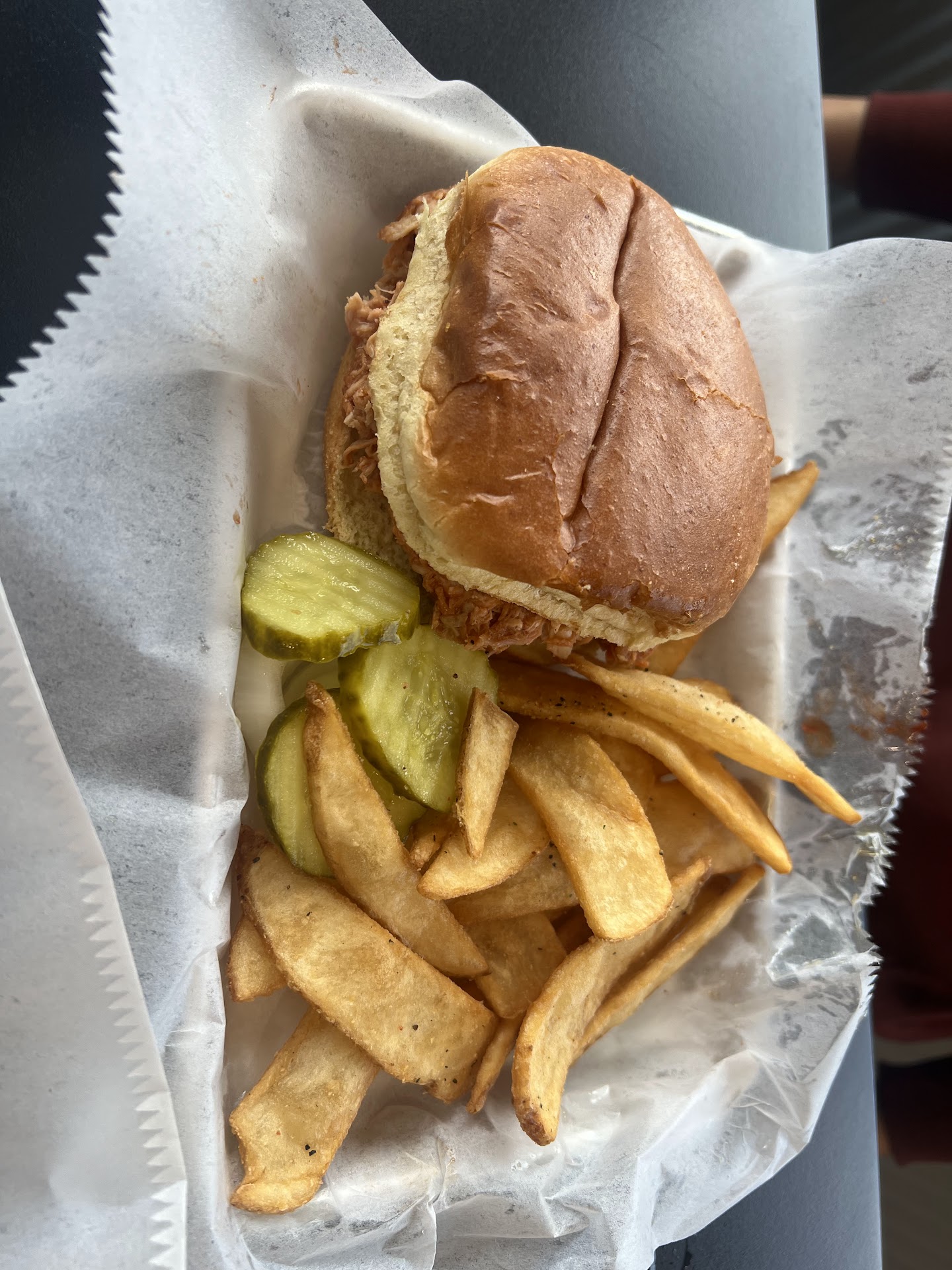 Delicious Food! The menu was extensive - great options for the kids and adults. We tried some of their fried green beans for an appetizer. Great flavor and crunch- be prepared for a little bit of kick on the breading. I loved it but some in our party found them too spicy. My wife and I had the pulled pork sandwiches, I had mine with their spicy mustard sauce. My wife tried their mild bbq sauce - both were delicious. The mild bbq has a hint of cinnamon to it, a little different than what we’re used to in Texas but great flavor. The spicy mustard was a good blend of vinegar and black pepper.