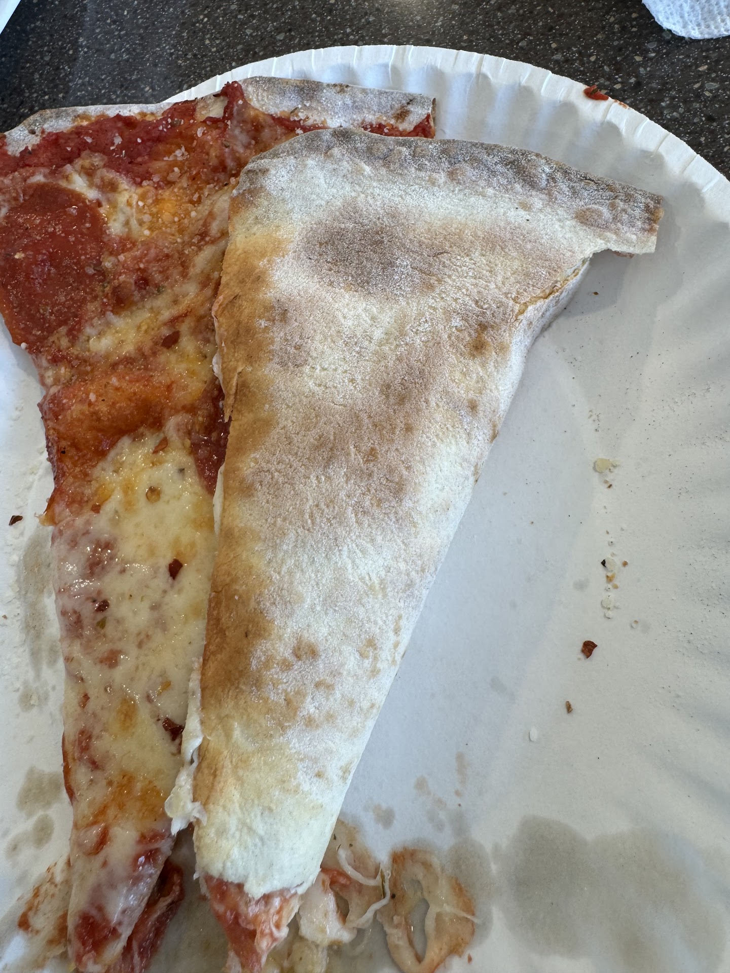 Now, when people here say the pizza is "thin crust" they mean THIN CRUST. Cracker thin would be thicker. I'm NOT kidding. I didn't know you could MAKE pizza this thin. I would say most of the pizza is about an eight of an inch. Yup, get your ruler out - that's a thin, thin pizza.
