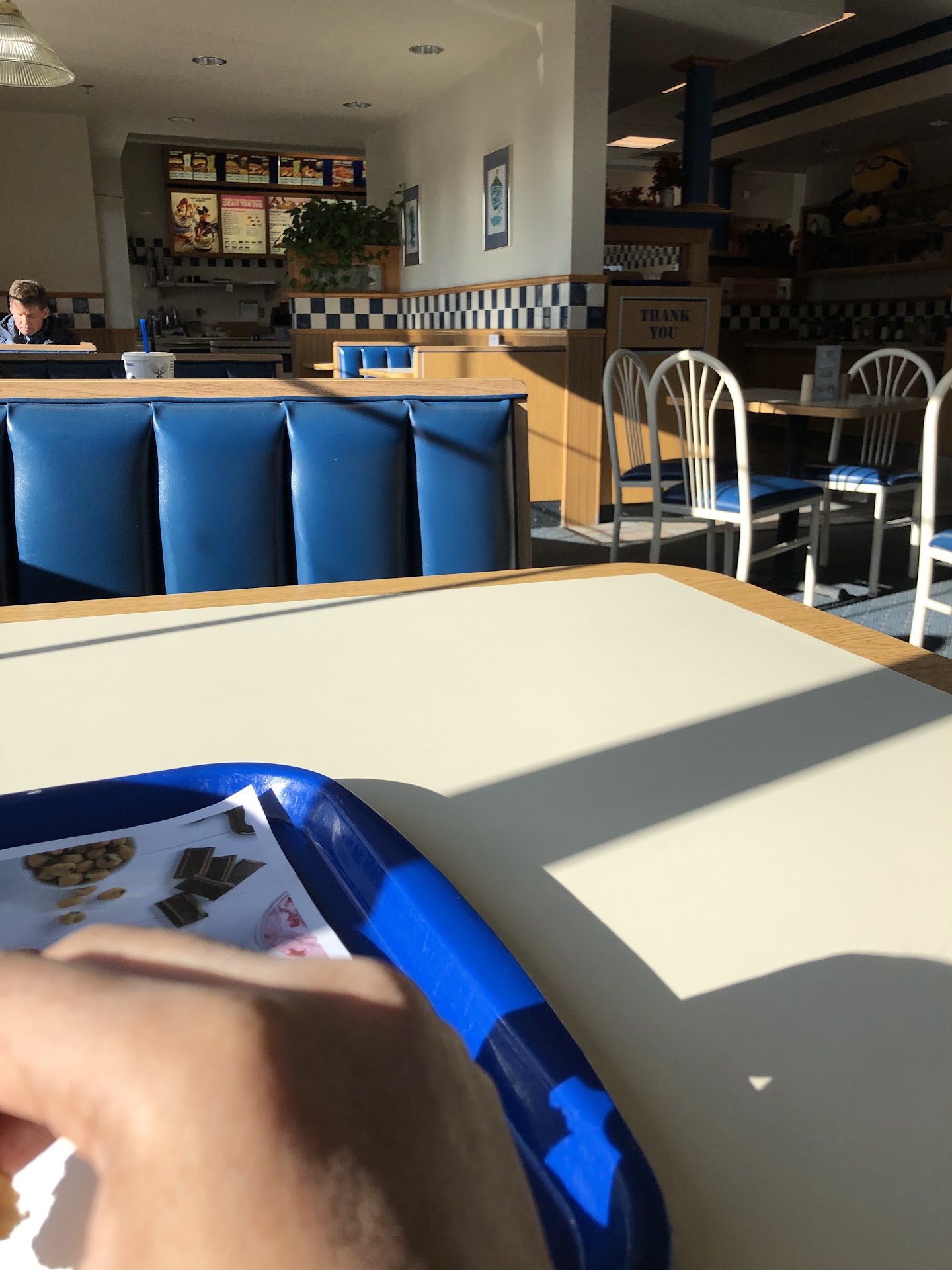 Usually when you order from the drive through they have your beverage and ice cream ready for you when you order. Instead they have a hut they staff by the drive up order kiosk where they can double the amount of orders they'll take but removes their otherwise efficient drive through model.