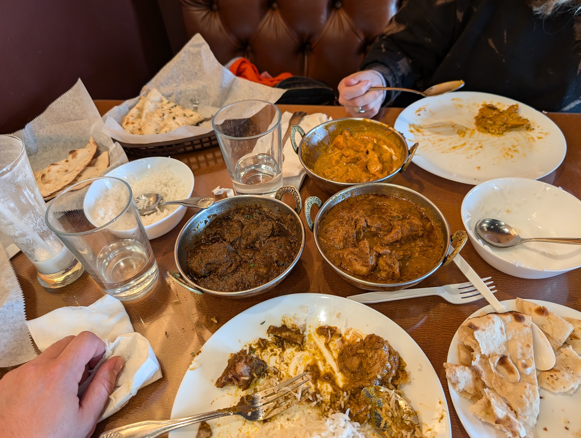 We enjoyed our time at Bay Leaf quite a bit. We went with a friend who had just moved back from London and was concerned he wouldn't be able to get good Indian food in Minneapolis. Well, his concerns are negated. Everything we got we liked although we didn't try anything from the Indo-fusion side of the menu. A couple things to keep in mind: They serve you on paper plates so it's not too fancy if that's what you're looking for. The food is quite spicy so don't have false bravado and order things too hot. This is not a place to impress your date. If you get the goat as your protein as I did, there will be many, many, many little bones which you must chew very carefully and remove with great care. (see pic) I'm sure I missed a couple that at one point I felt, but then, unfortunately couldn't find again if you know what I mean, and then the swallowing happens. Rats. So if I keel over while I'm writing this just know it's the perforated bowel. I asked if this was typical of their goat and our server said it was. It was tasty, just very, very boney. It's a smallish place, only 7 or 8 tables so don't show up at rush hour and expect not to wait.