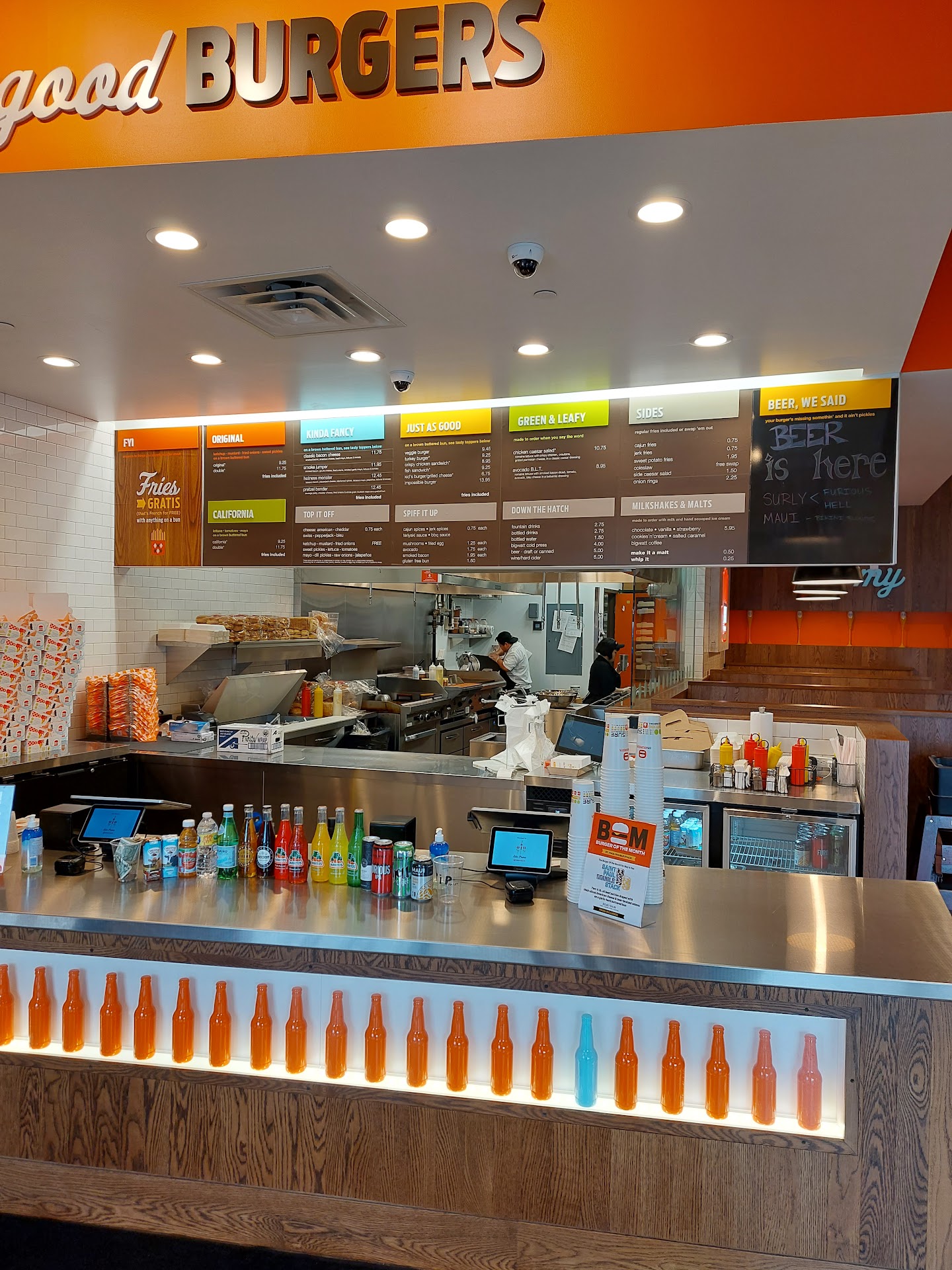 Staff was extremely friendly, coming to the table to ask if anything like dipping sauce for fries was needed and taking care of trays. The restaurant was also very clean.