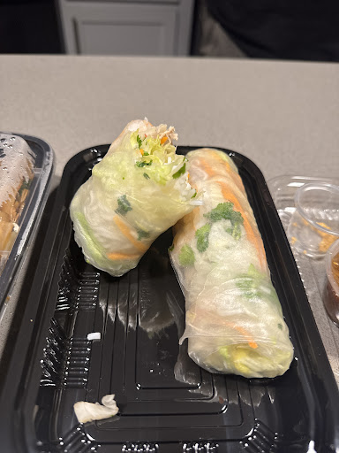 The Vietnamese-style egg rolls are small and tightly wrapped, served with a mild fish sauce. They were a bit on the greasy side, but still crunchy and tasty.