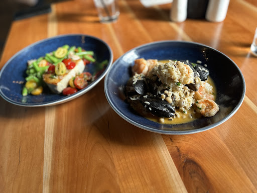 If you're not a local the main entrance in not well marked that we could see. We entered through the bar because that's where we saw people coming and going. We awkwardly stood for a minute or two with staff at the bar and two other at their POS system. No one acknowledged us. We eventually saw the hostess down a ramp at their front door. When we checked in, she was very nice and we were quickly seated. Our waitress was good and attentive throughout our meal. The atmosphere is great. It's an old building refurbished into a lovely place to sit and socialize. It's simply designed but done well. The bar was packed but they also had tables to sit at. They also have a separate dining space. The menu is small, I didn't take any pics, but it hasn't seemed to change in the last 2 weeks per another review I read. The menu states they have a changing menu with the seasons however, so maybe the fall menu is different? Do not order the Fruiti De Mar pasta. Just don't. The mussels tasted muddy, like one actually tasted like the smell of swamp mud so the remaining ones were left to the side, my husband said the same thing about his. You also don't get a small plate or bowl to place their shells on, not a big deal, but wherever I've been served mussels I get something to place the shells on. The shrimp were slightly over done and dry, but the crab was okay. The noodles were so dry. They tasted like they were taken straight out of the pasta water, left out to dry some then placed on the plate with the seafood and not even hot. There was no sauce, no butter, not even a lemon to squeeze over it, nothing! I had to salt it because the noodles weren't even salted very well. Just plane, dry noodles, 6 shrimp, 6 mussels and about 1/2 cup of crab meat plopped on top. For $28/plate for this particular dish, I felt I paid too much for what I got. The blackberry cider is very good and beer/cider/ales run about $7 each. The Mahi dip was pretty good as well, it came with grilled bread slices that were awesome. If you like bread at your table you have to order a $6 bread plate and the same for a salad ($10-12). All sides are also separate and about $7 each. Most restaurants I've been to include bread and a salad with the meal. We opted to not get the bread plate and salads. Our bill was $92 for 1 app, 1 cider, 1 sour, and 2 main dishes (we both got the seafood pasta). I'd like to try this place again, mostly for the atmosphere, and I'm hoping other dishes stand out over the failed seafood pasta. Maybe add a butter sauce, Alfredo, lemon, something, ANYTHING to give it flavor! Don't let this pasta dish be the downfall of this really cool restaurant! It seems this is the dish all reviewers focus on in a negative light. I did read the reviews that mentioned the pasta, but I was hoping they were wrong or too picky. They were not lol. I hope the chef reads these and knows it's not from a bad place, we want places like this to succeed in our small towns, they bring other people here, they make the area worth coming to! Please, for all that is holy, add some flavor to that pasta dish or take it off the menu, it's definitely not what...