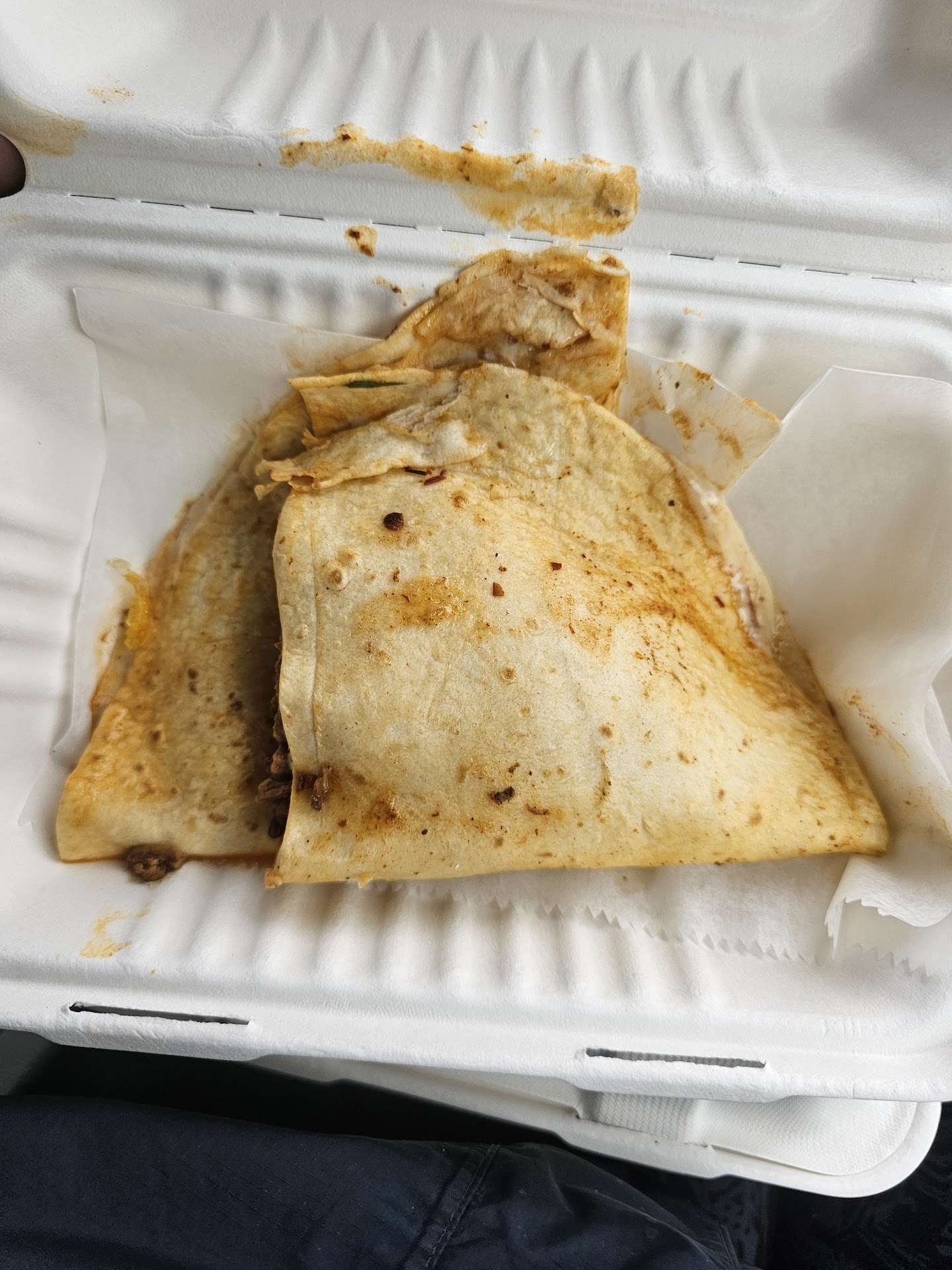 My quesadilla was so soggy, I could barely even lift it out of the box.