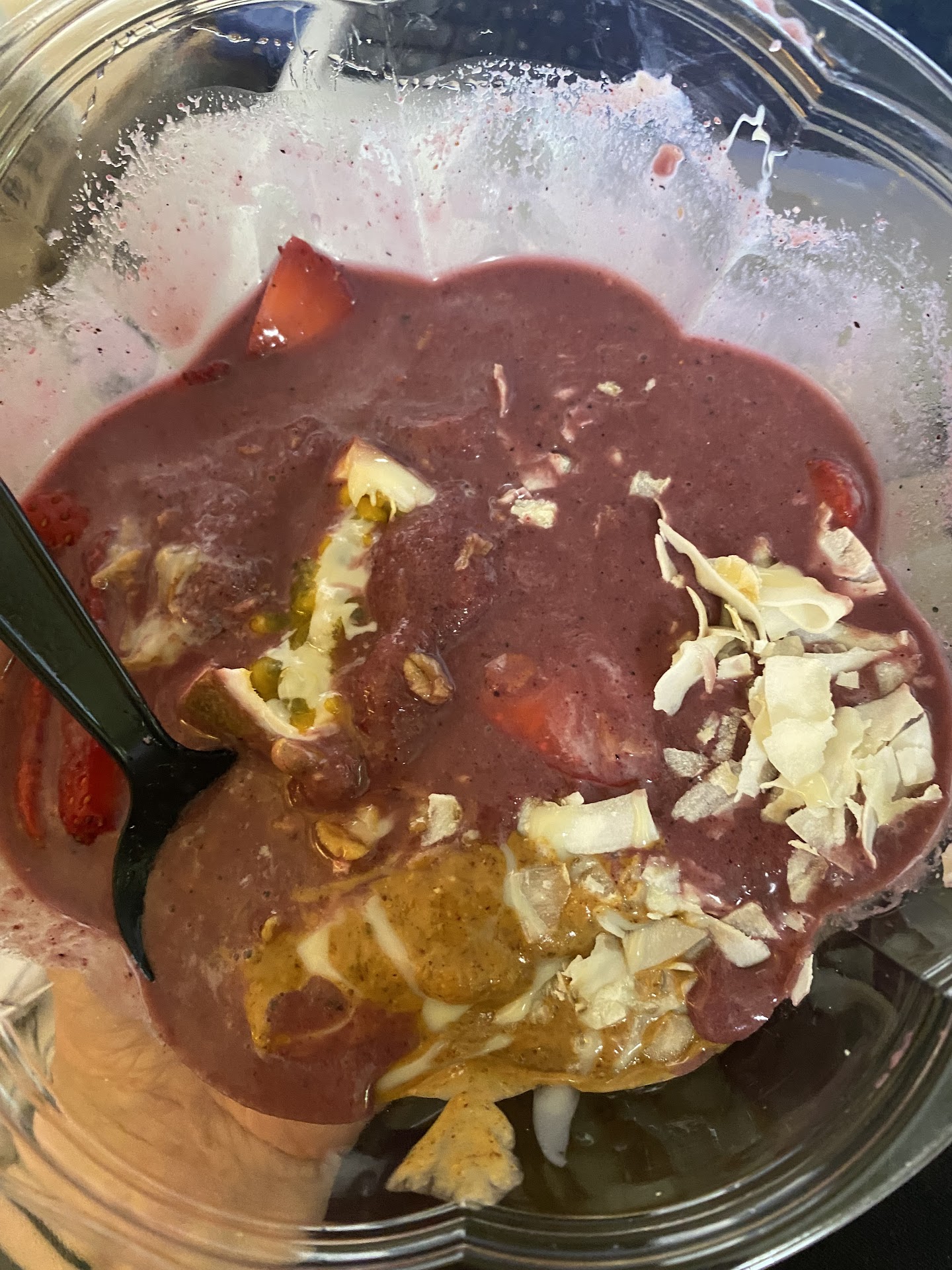 I asked to taste the acai base and learned that it’s a blend. This is almost always a red flag. I asked if it was a smoothie and she assured me that it would be thick enough to eat with a spoon. She was nice to allow me to remove one of the items from the base (banana). The other items mixed in were strawberry and blueberry. When I got the bowl, the acai tasted like flavored ice from being thinned out, as I expected. The granola also was mixed into the base instead of sitting on the top as in a usual bowl. Thinning out the base with cheaper items can definitely be a smart business move, if customers are still satisfied. However, I would’ve rather not paid $17 which is on the upper end for an acai bowl. For reference, I live in LA where acai bars are abundant. It can range from $9-15, depending on the size, unless you add extra toppings (usually in excess of 4). The ones with cheaper prices are known to blend their base, giving a watery smoothie effect. I’m not sure of the amount of options for acai here nor the shipping cost, considering this is on an island. The price of $17 may be necessary. However, it’s not an indication of the quality you’re getting.