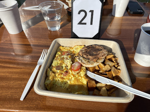 Food is still being served on the deep cardboard 'plates'. And the food quality keeps getting worse! One of my tablemates ordered the breakfast burrito, the cups of cream and salsa were hockey pucks, frozen hard. And my omelette was totally overcooked, it was so dry it was crumbly. I looked into the kitchen, again just teenage kids in there doing the cooking.