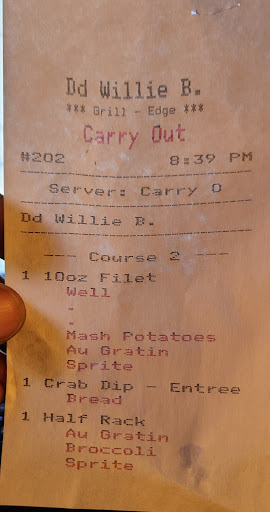 Read moreWent to dinner last night with my son his half brother and his two best friends. These are21/ 23 year old guys who like to eat. I would just like to say horrible service. We ordered drinks and asked for lemons with the teas. The drinks came just water, soda and teas and she had no idea who ordered what. I ordered a bowl of French onion and the guys ordered appetizers. The appetizers came still no soup. I had to say where's my soup loud enough for someone to go get it. Then I went to order prime rib which because I waitressed and bartender for many years, I know is an item that runs out quickly or there may be only a certain temperature left. So I asked specifically do you have prime rib. She said yes. A young man ordered teriyaki wings she comes back once to tell us there was no prime rib , I then ordered NY strip med rare with broccoli and a baked sweet potatoes. She comes back again to.tell us they are out of teriyaki sauce. When our food comes my broccoli was so cold butter would not melt on it and the steak was rare and cold, I mean seriously cold. I just had it boxed up and recorded it today for lunch. With covid I did not ask them to warm it because I did not believe plates should go back and forth from the kitchen. Then she never comes back after the food runners delivers the food. So when she does she puts the check on the table and I ask may we order dessert and she says we are closed. I was so disappointed in her service. Where was the table visit that said, "hey guys, would you care for some dessert before the kitchen closes?" So I ask can we get it togo? All of which makes a check larger which in turn usually grants a larger tip. She has to go ask if she can get it to go. She says yes, we order then comes back and says sorry we are out of cookies. By this point I just wanted to leave. My son said the girl had worked there for years. You would have thought it was her first...