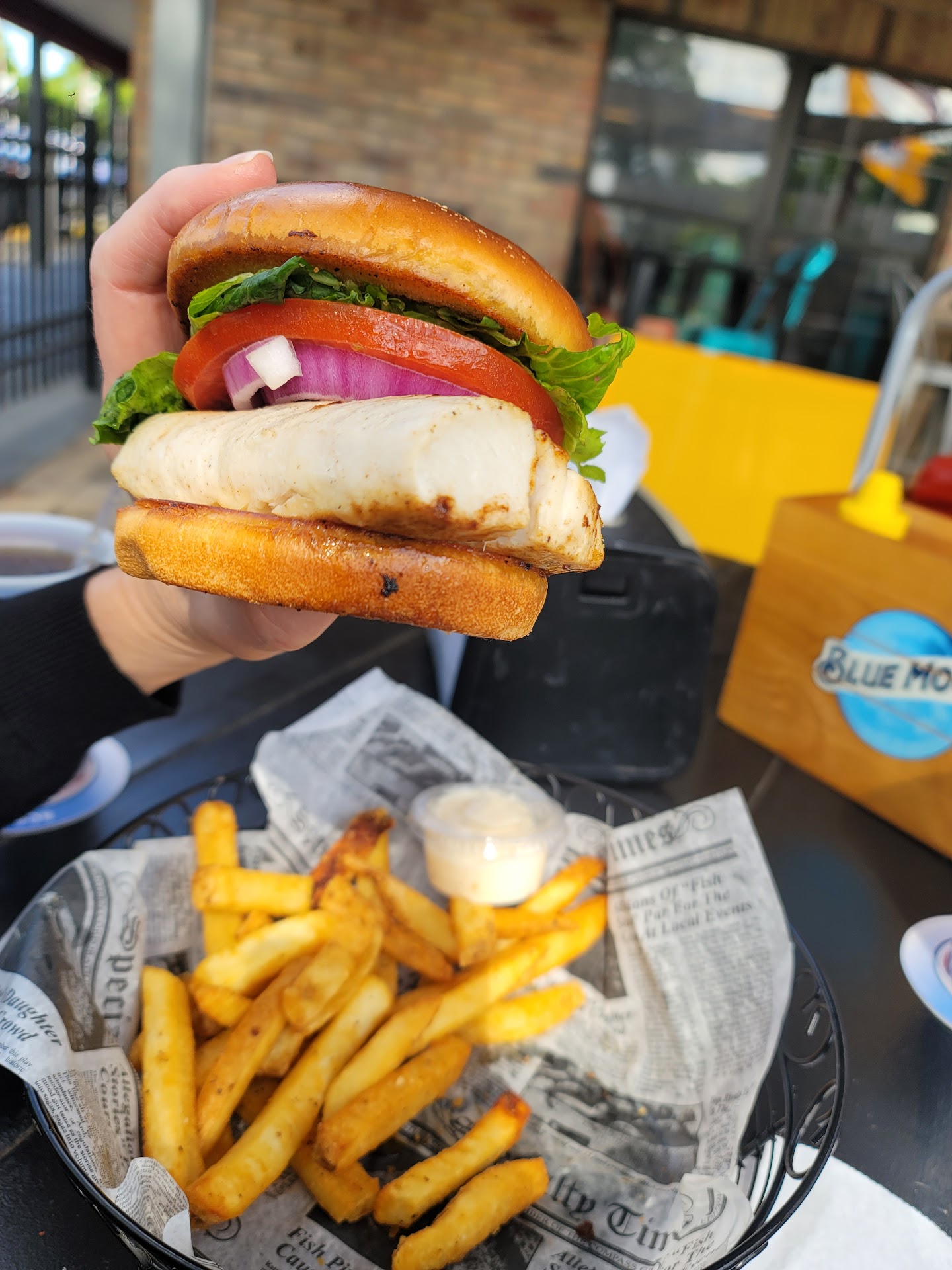 Read moreThis review was from when the place was called TNT, Trudys Neighborhood Tavern. Mom and I went there today for a late lunch/early dinner. The grilled mahi sandwich on brioche bun was excellent (see my photos). It was a large piece of fish, cooked to perfection on a toasted brioche bun with lettuce tomato and onion, tarter or mayo came on the side. The fries are some of the best we have ever had, they were thick and chunky! Mom had the French dip and she loved it. It was so big she was only able to eat a third of it. We ate outside, there were a few smokers so we sat with the wind at our back. Service was great, we were waited on almost instantly, food was prepared quickly, and the portions were big. We will tell our friend and neighbors to...