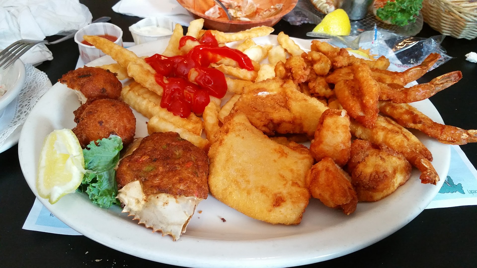 Beyond that... the Halibut looked like it came out of a frozen bag and it tasted bland , The fries were hardened in the middle just like frozen fries would be , The baked potato was okay , although it was not baked in the oven and it did notcome with any chives. The crab cake balls were overcooked and dried out , not much flavor. If only they had make them smaller …or it into a paddy instead then there would be no need to overcooked them. The big disappointment here was the Halibut , but it's my fault really. I should have known North Pacific Halibut doesnt come fresh off the boat over...