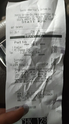 Third visit (today): ordered two sonic blasts. After Iâve paid a line cook comes out to let us know the m&ms are wet and she doesnât feel comfortable serving them so we can pick something else instead. She says push the call button and let them know. We do, ask for cheddar peppers. A second girl comes out saying they donât have m&ms and I tell her thatâs why I asked for peppers. Bring the order, Iâve been charged for peppers, asked they be comped (as, in my experience in the industry, they would be given the inconvenience plus the 30 minutes this has taken). Manager comes out asks what she can do tell her comp would be great. She comes BACK out nearly yelling about her staff told her I didnât pay for the blast they took off (I had) and I couldnât just have peppers for free...but she had already taken them off so the point of the conversation was null.