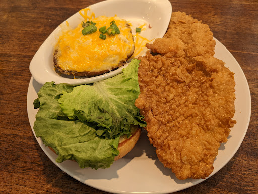 Went with my parents and brother for dinner. We got there around 5:30p on a Thursday. The bar was busy, but we were only the second table seated in the dining room. Dad ordered the salmon. Although I did not think this looked appealing when the plate was placed on the table, Dad did say it was good. My brother got the pork (chops or loins, I don't remember). He was pleasantly surprised at how large they were. Since he knew he was getting two with his dinner, he expected each to be roughly half the size he was served. He also thought they were especially good and tried to share his dinner. My Mom and I both got breaded tenderloin sandwiches with French fries, although Mom ordered hers plain (without lettuce, tomato, or mayo) and without a bun. We could tell our tenderloins were freshly fried, with crispy breading and a juicy, flavorful interior. The lettuce and tomato were fresh despite it being January, and pickles I added were cut thick and crunchy. The French fries were average. They were not as hot or crispy as I would've liked, but they were slightly spicy in a pleasant way I was not expecting.