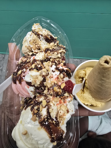 The first time I came I got a banana split in a cup and I got vanilla ice cream, bananas obviously, strawberries, pineapples, and hot fudge. It was absolutely delicious and the price was beautiful! I also got two pup cups! Definitely wanted to come back! The second time I came I ordered the same thing except for the pup cups. However my banana split came with one of the white plastic spoonfuls of Smucker's pineapples, but the pineapples were only placed on top of the whipped cream. I had about 3/4 of a diced up strawberry and some hot fudge drizzled around the walls of the cup. The price was different the second time as well. The first time I paid about $7 for the banana split and $2 for each of the pup cups and I left a tip and the total of everything was $14. This time my total came to 10 something but the banana split was completely different and I didn't get the pup cups. Also, it rang up as $6.77 and I had to do a second transaction for $3 and some change. I'm not sure why because the first time the quality was top tier and less expensive and this time the quality was definitely not top tier and much more expensive. It tasted good but definitely not what I was expecting. The girl working there was absolutely delightful and I am not complaining about her in any way! She was very kind and very sweet and she was just doing her job. However I do think that there should be uniform recipes for things and uniform prices. I was disappointed this time around and I'm not sure if I will want to come back because I don't want to risk paying $10 for a subpar banana split. Especially when it was much better the first time around and the price wasn't as bad. Again, the girl working this evening was absolutely awesome and I wish nothing but the best for her and her future. She was such a sweet girl and I don't believe she was doing anything intentionally wrong. I think they have really good ice cream and everyone I've encountered there is very sweet, but I'd be lying if I said I wasn't disappointed this time. I was also confused as to why the price ring up to $6.77 and I then had to do a separate transaction and pay more money than I did the first time. If this sounds confusing, I agree because I'm confused as well. Anyway I hope this helps and if you go I'm sure you will enjoy your experience as well as your sweets! Hopefully the kinks can...