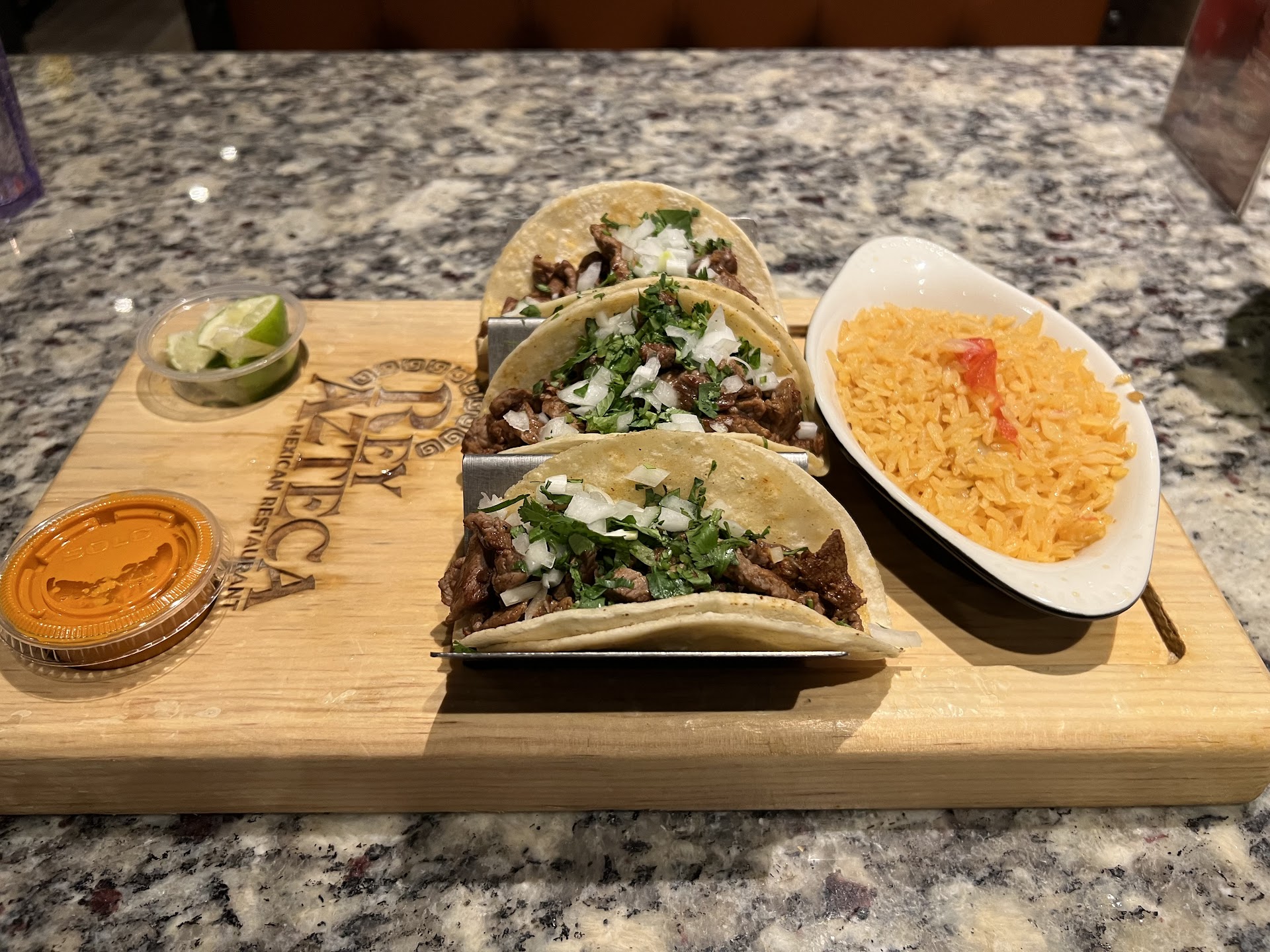 We had the supreme burrito with steak and shrimp tacos. Everything was cooked perfectly, brought out hot, and good to generous portion sizes with large sides of refried beans and rice. Total bill with soda was $35, which felt like a good value. We'll look forward to returning, glad to finally have decent (Americanized) Mexican...