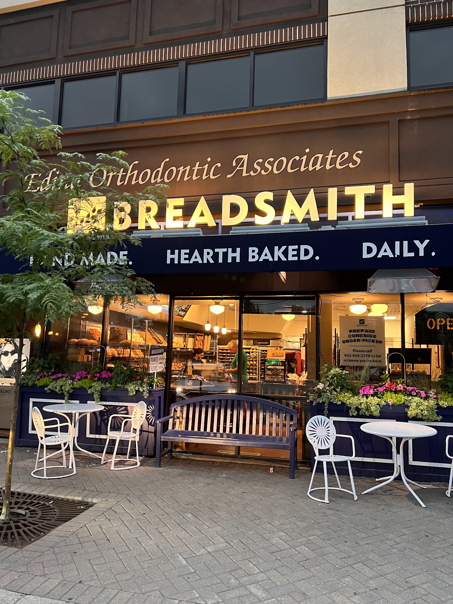 Read moreI am partial to Breadsmith, having lived in Milwaukee and spent time constantly searching for bread in the Parisian manner until I found Breadsmith. In France, good bread is vital to any decent meal. After moving to Minneapolis a couple of weeks ago, I was surprised to see a Breadsmith in Edina. Yet, it seems Edina has everything except a lake, diversity and cheap prices. A line was moving fast, and I had my order ready in my head. Unfortunately, the staff at the Breadsmith in Edina did not speak English well, surprising for Edina. It was comforting, more like my hood near Lake Street, but sadly my order was screwed up, and when I arrived home 35 minutes later, several items were missing. Begrudgingly, I drove back to Edina and picked up my missing items. It took an extra hour at least. My three loaves of bread were great though, and it was cool Edina celebrated one aspect of diversity. An extra hour isn’t too bad. Breadsmith makes...